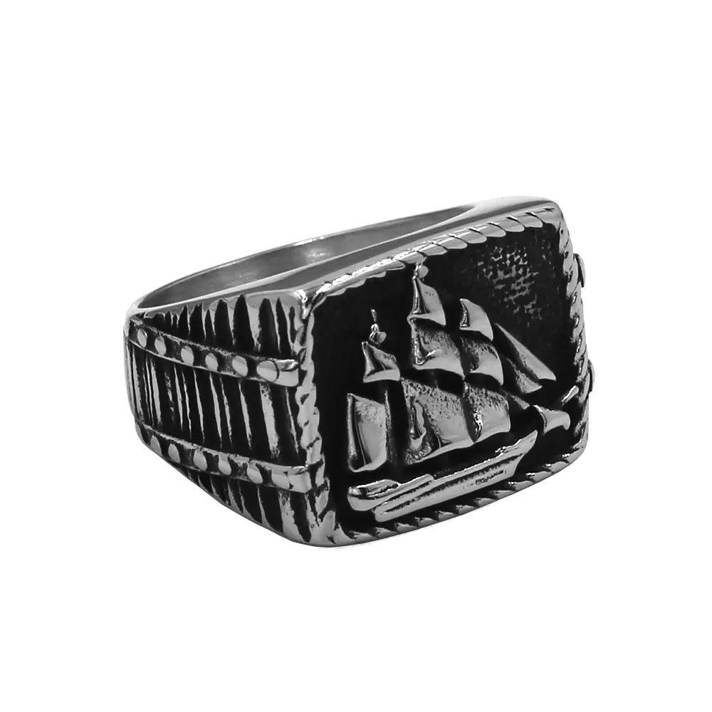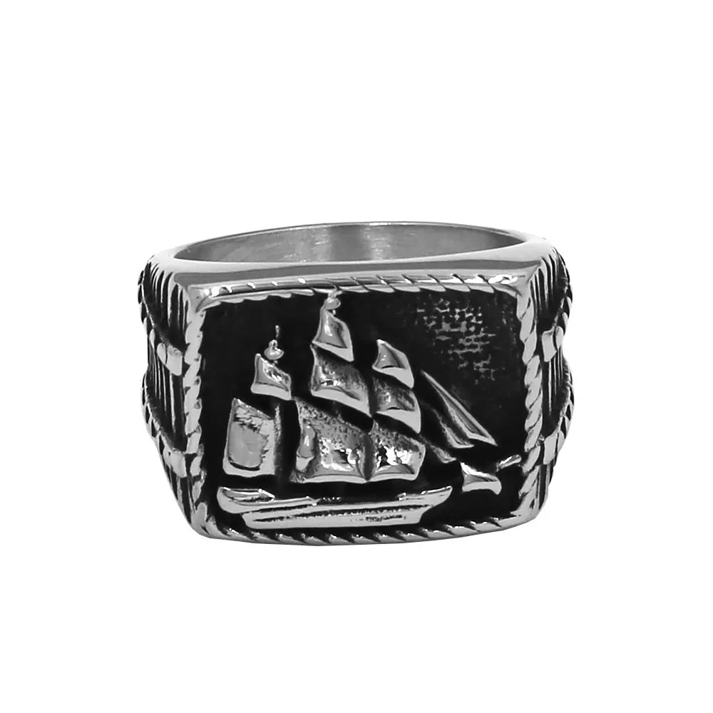 Classic Sailing Ship Ring 316L Stainless Steel Jewelry Vintage Rudder Anchor Biker Ring For Men Wholesale SWR1038A