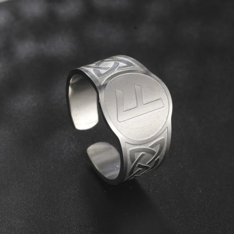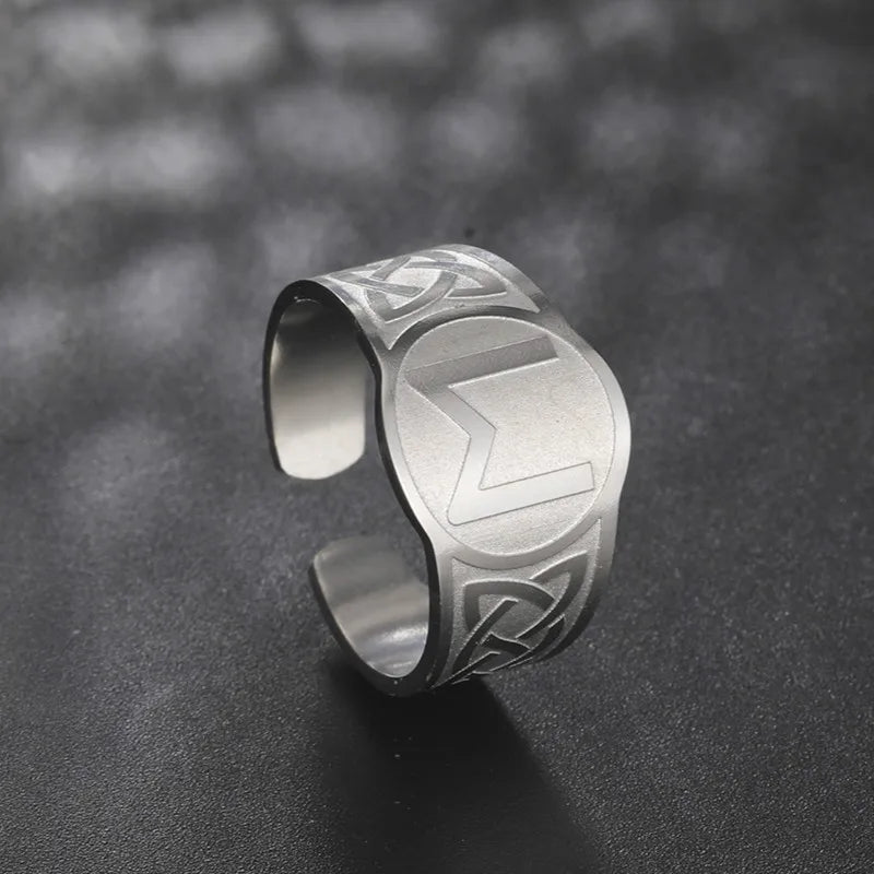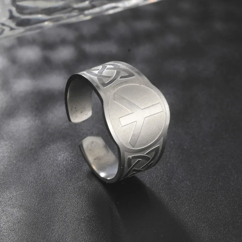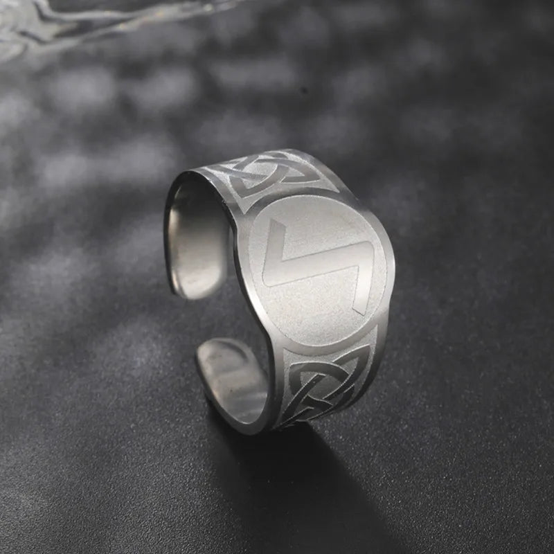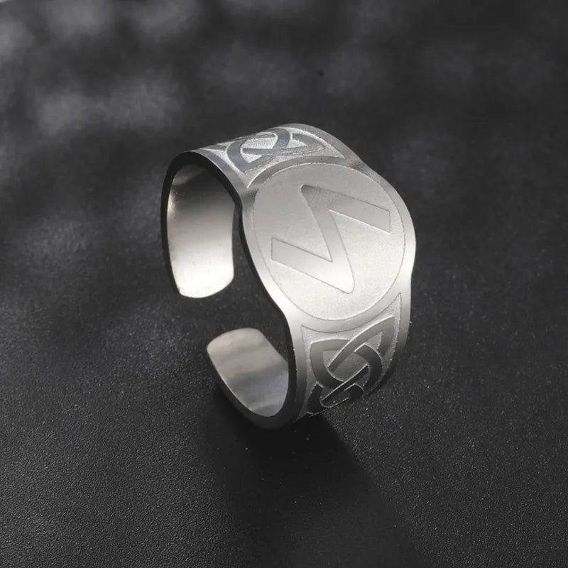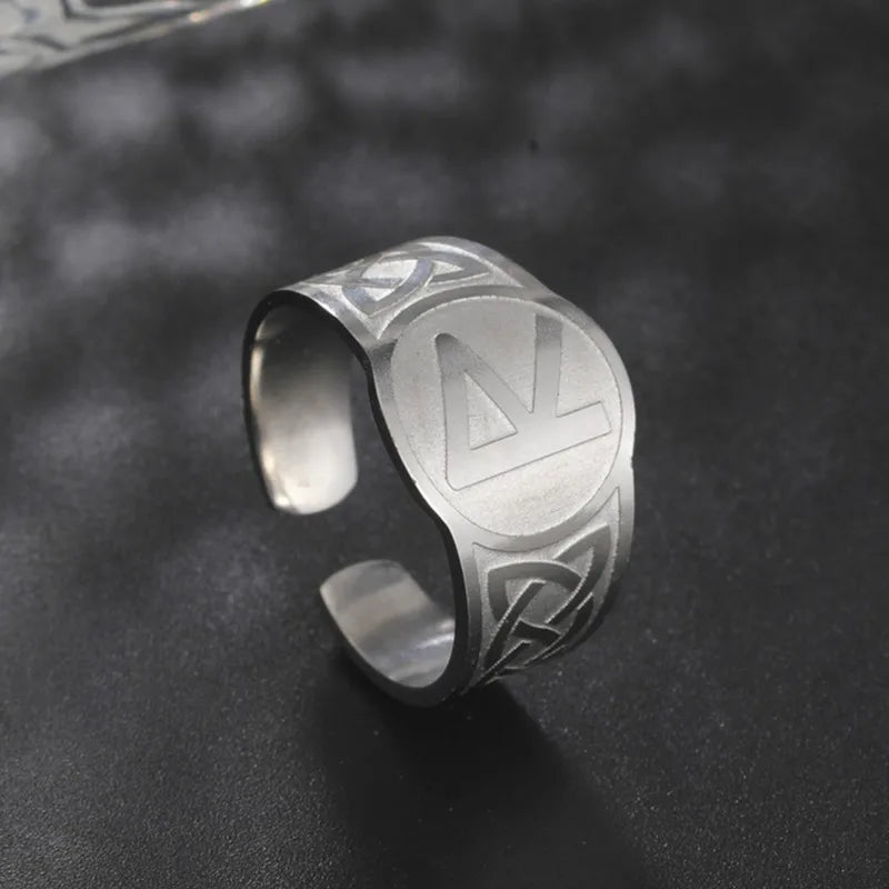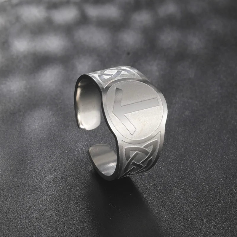 Dawapara Runic Ring Celtics Knot Futhark Unisex Adjustable Rings Norse Rune Scandinavian Symbol Stainless Steel Jewelry