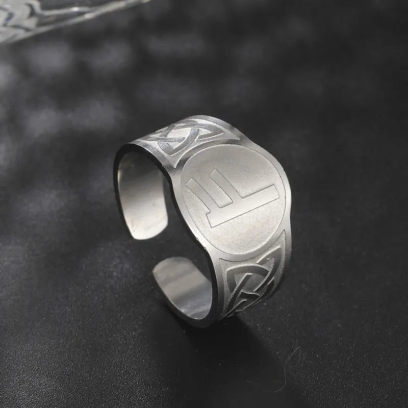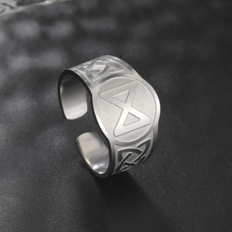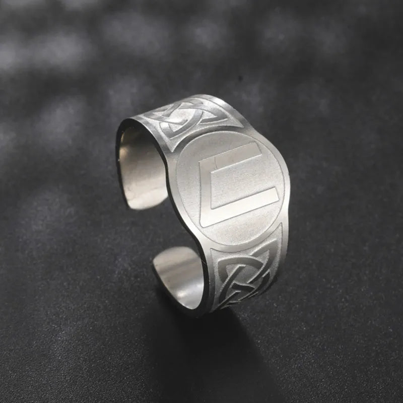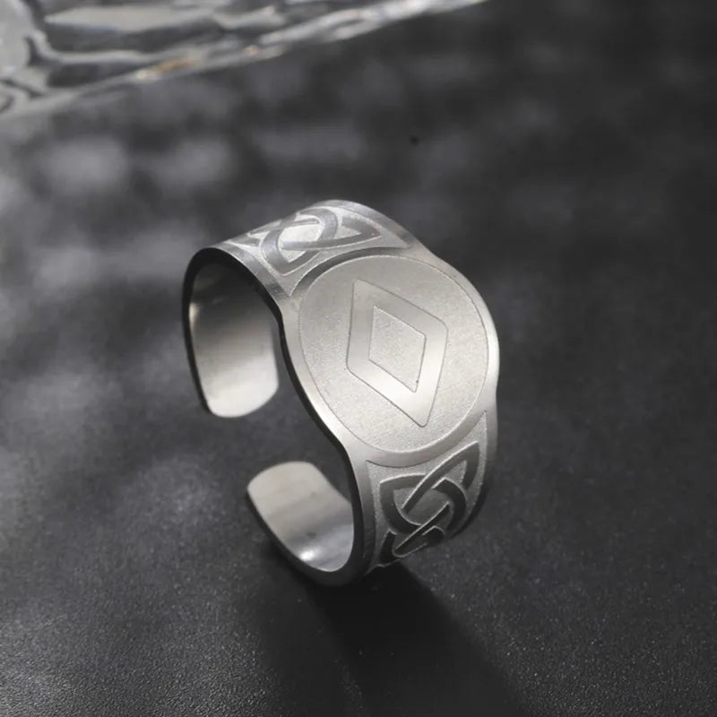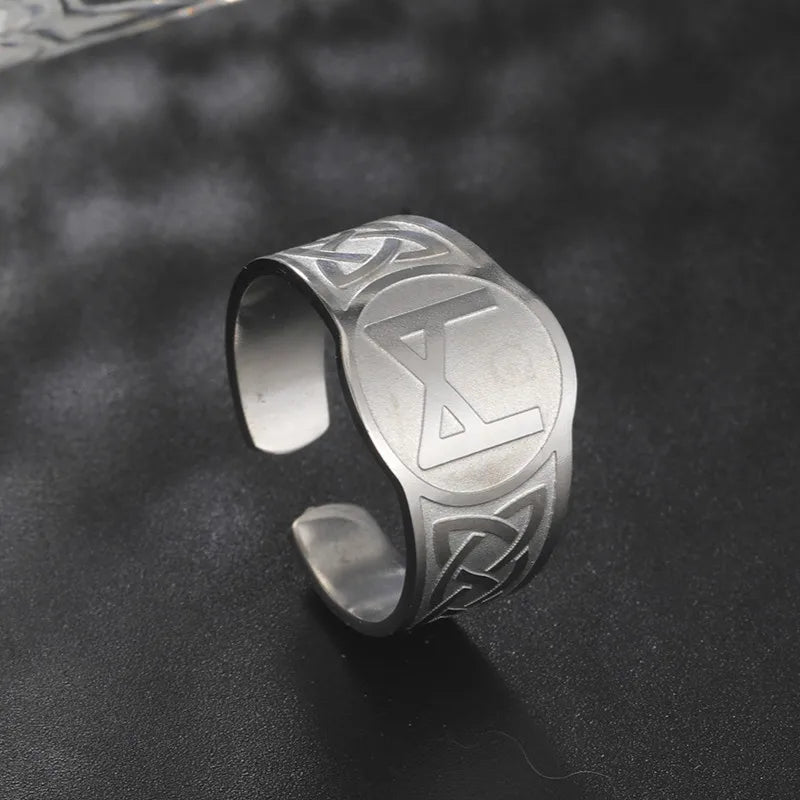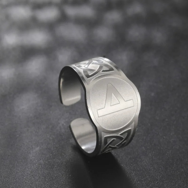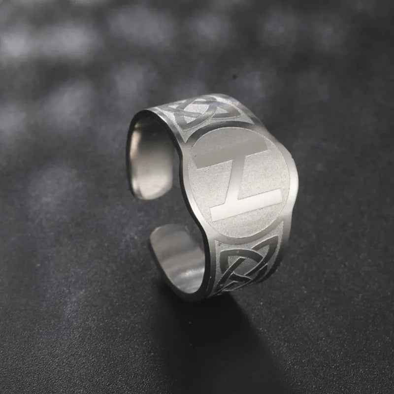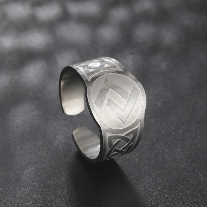 Dawapara Runic Ring Celtics Knot Futhark Unisex Adjustable Rings Norse Rune Scandinavian Symbol Stainless Steel Jewelry