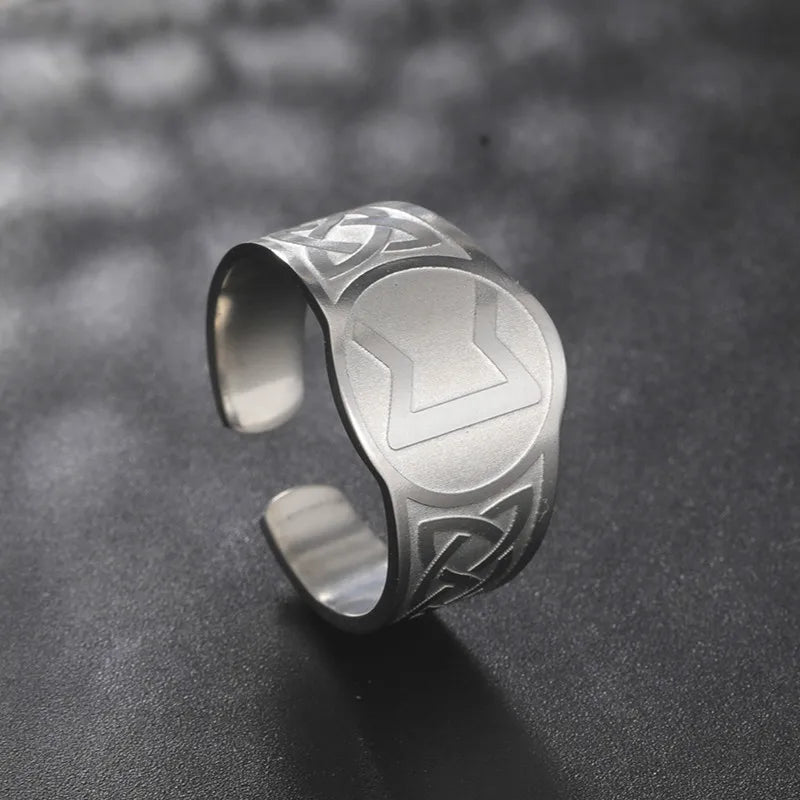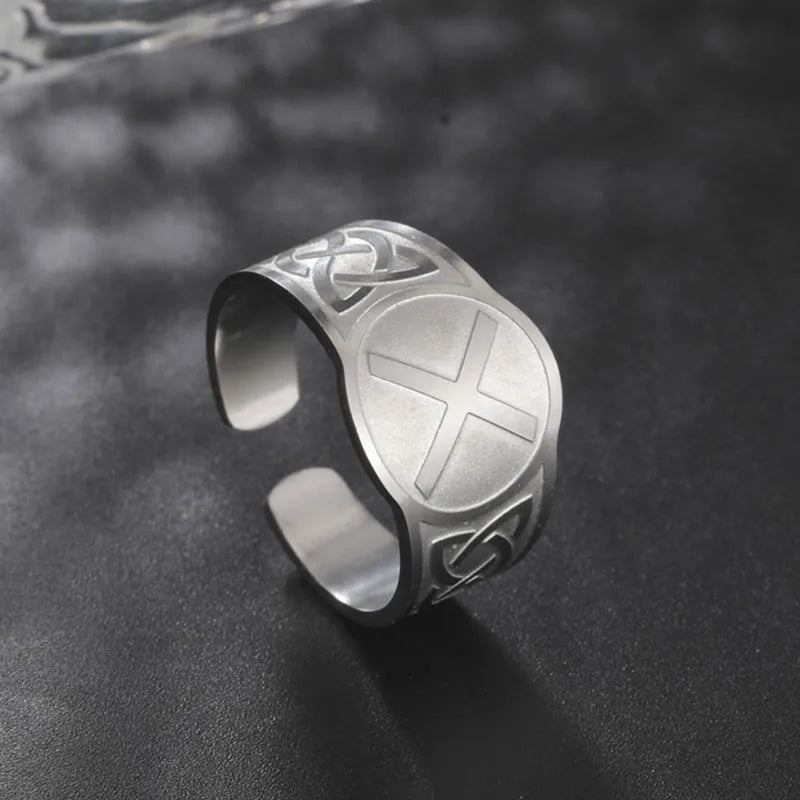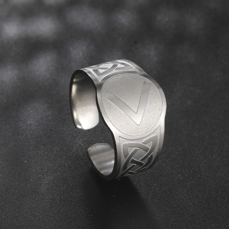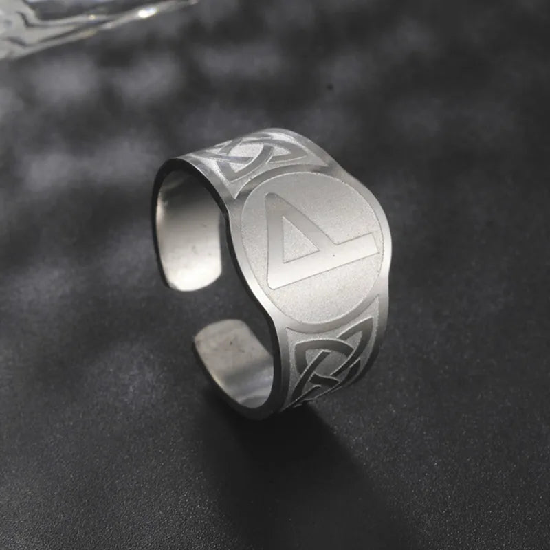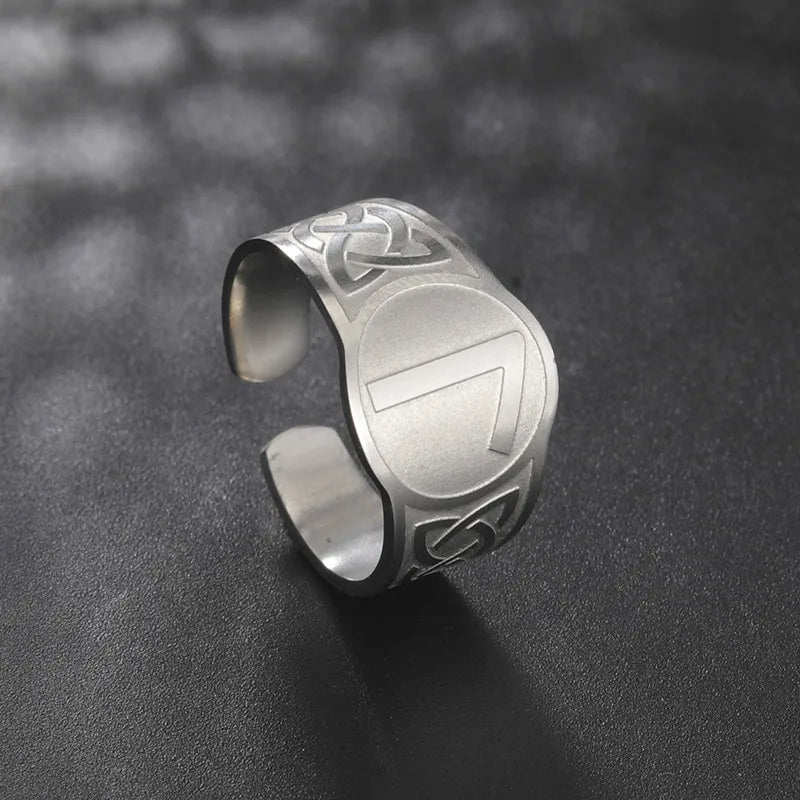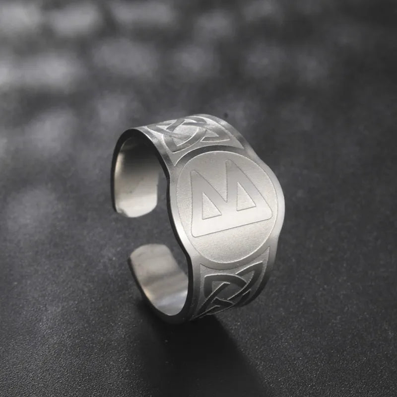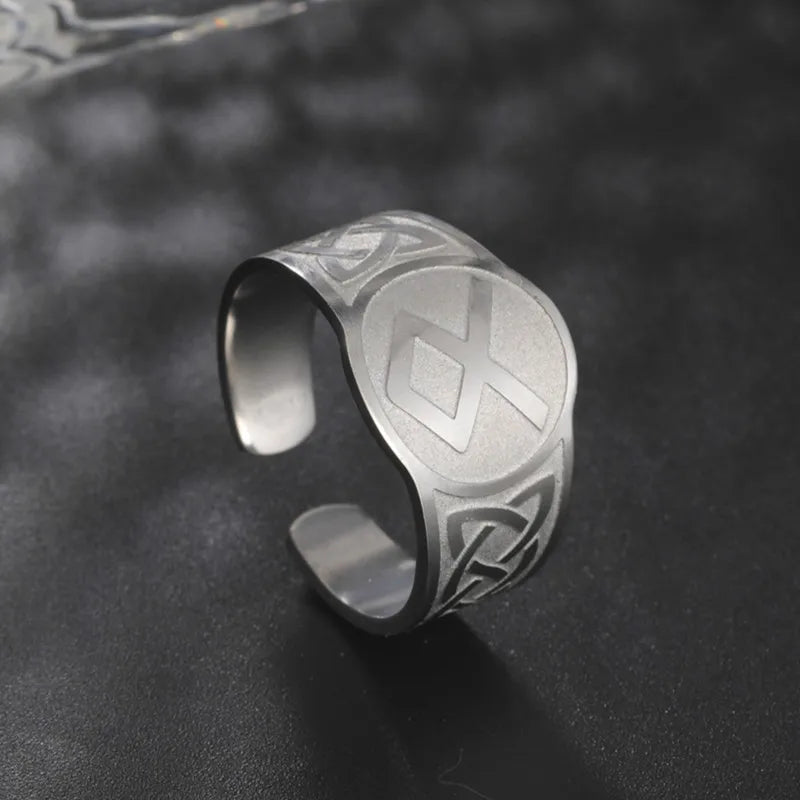 Dawapara Runic Ring Celtics Knot Futhark Unisex Adjustable Rings Norse Rune Scandinavian Symbol Stainless Steel Jewelry