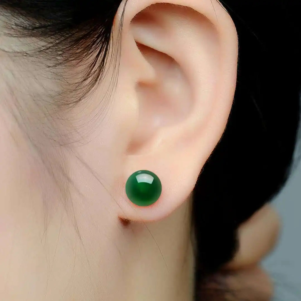 Emerald Sterling Silver 925 Jewelry Stud Earrings for Women Ball Simple Crown Jade Earrings Fine Valentine Jewelry 925 for Women