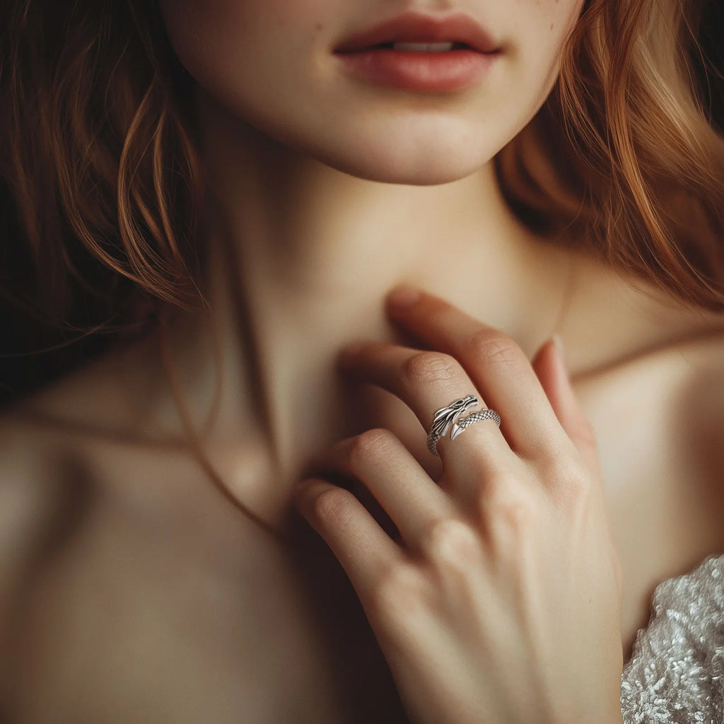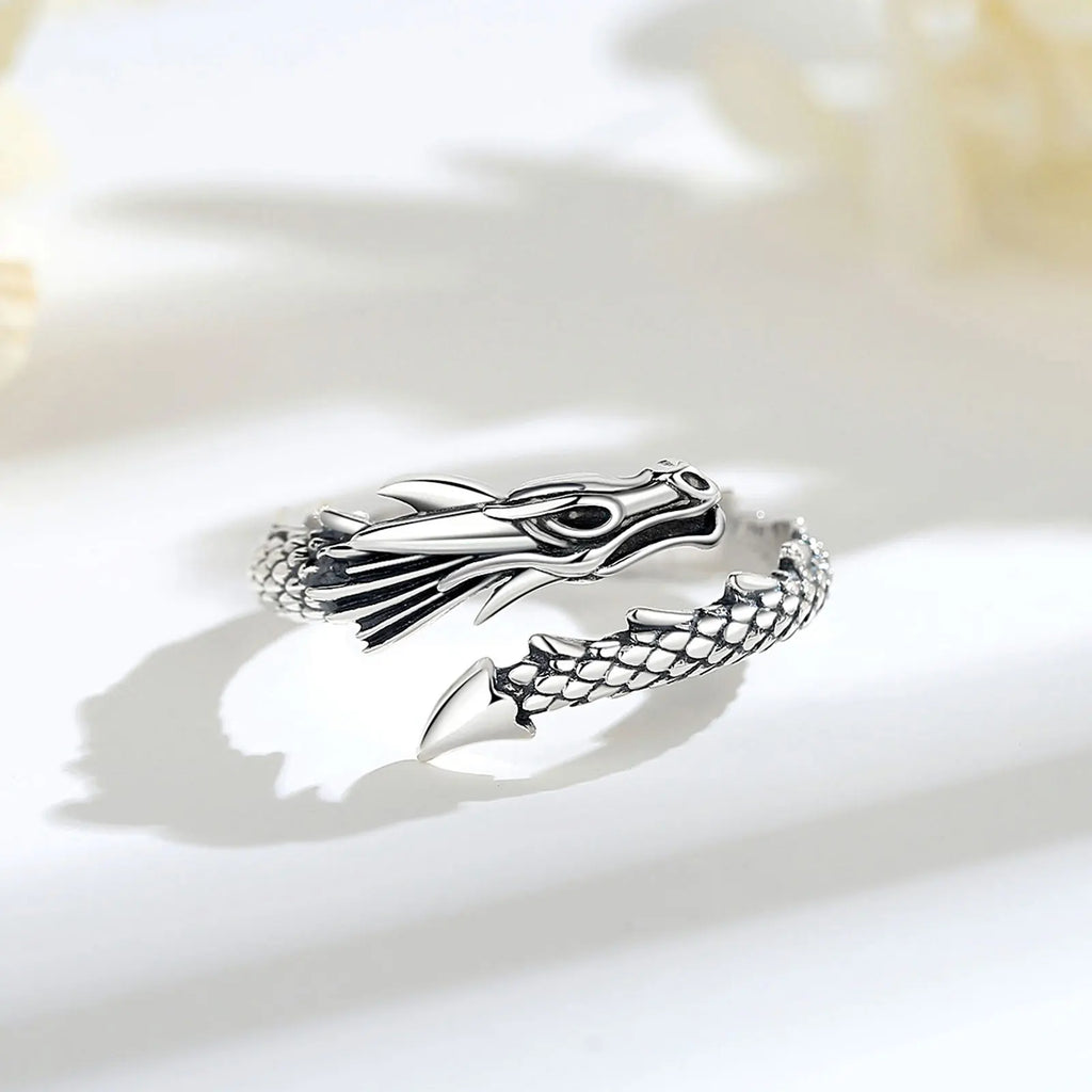 Eudora 925 Sterling Silver Dragon Adjustable Ring Temperament Personality Cool Dragon Ring Vintage Jewelry Gift for Men Women