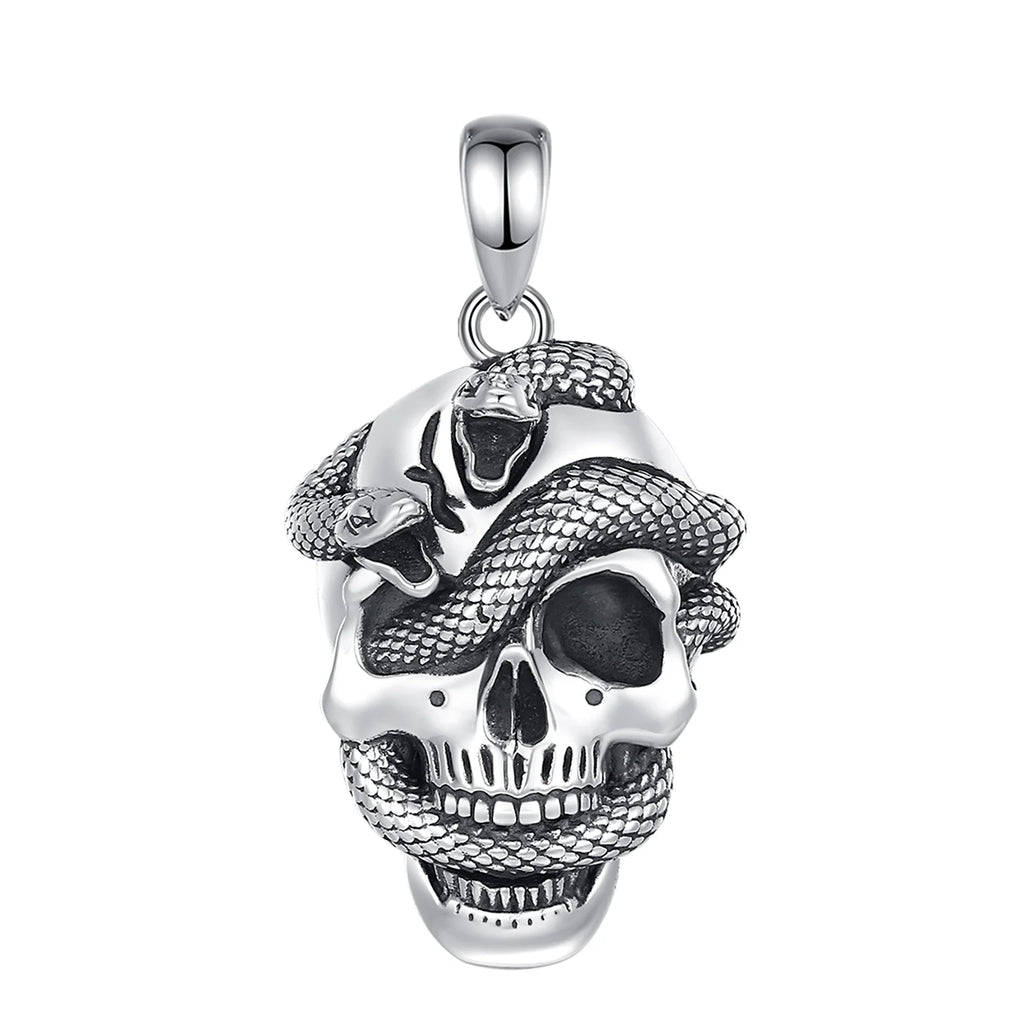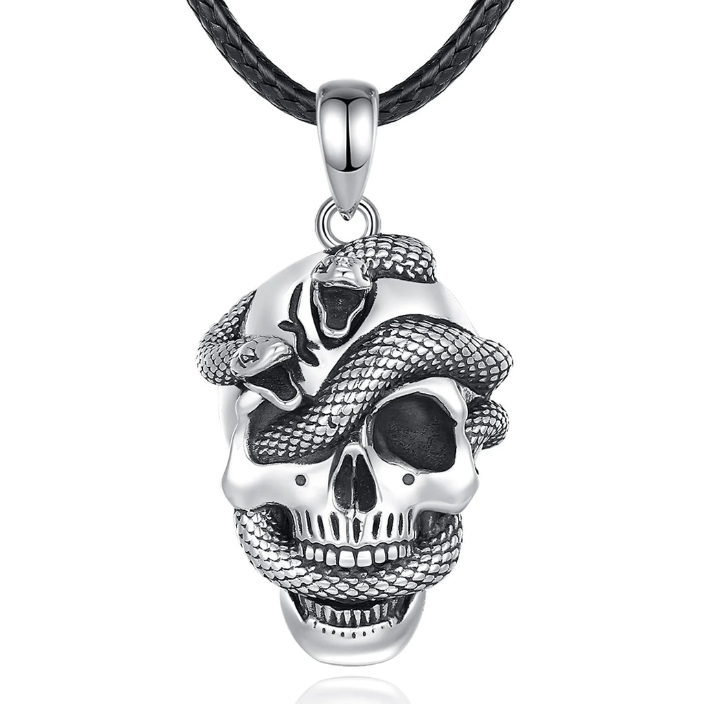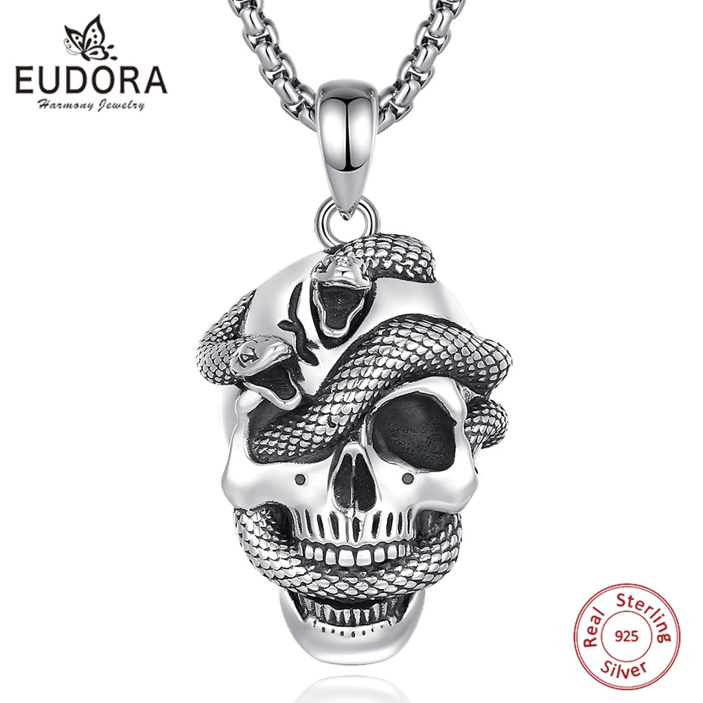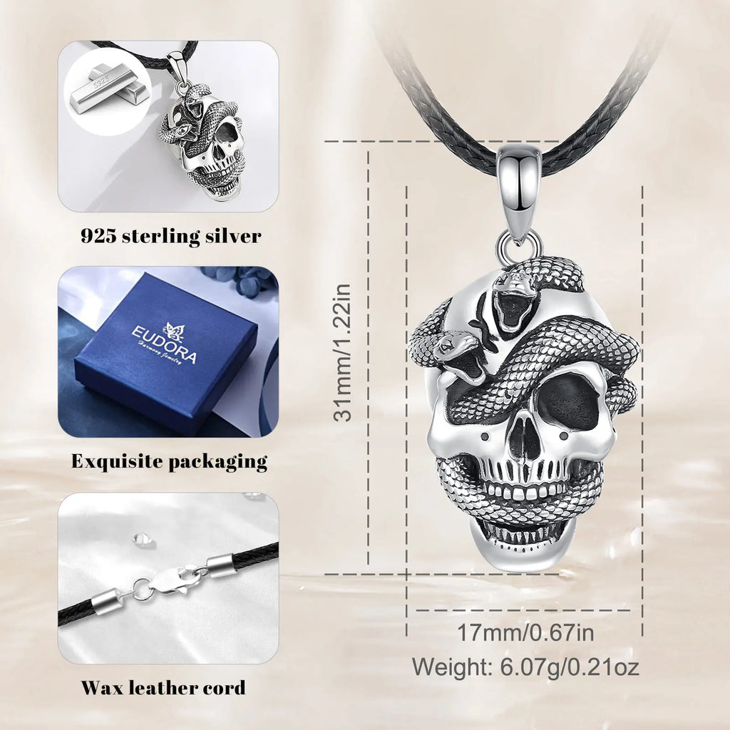 Eudora 925 Sterling Silver Skeleton Snake Necklace for Women Man Vintage Skeleton Skull Pendant Personality Jewelry Fine Gift