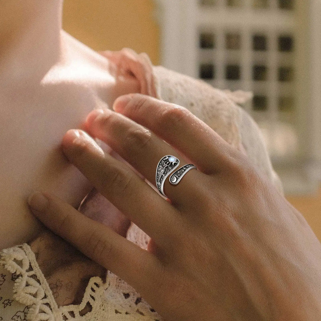 Eudora 925 Sterling Silver Triple Moon Goddes Adjustable Ring Moonstone Hecate Amulet Spoon Ring Vintage Jewelry Gift for Women
