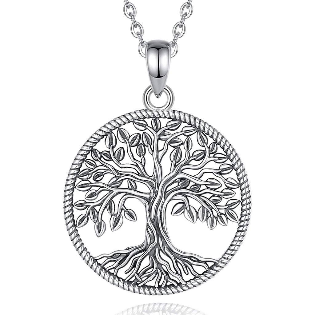 Eudora 925 Sterling Silver Vintage Tree of Life Necklace Vintage Yggdrasil Pendant Tree Jewelry Gift for Mom and Grandma Women