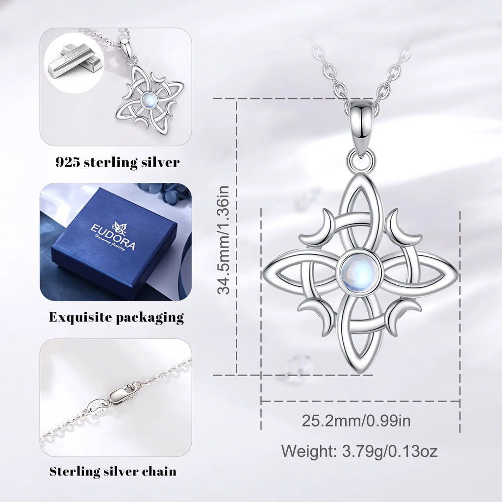 Eudora 925 Sterling Silver Witches Knot Necklace & Bracelet Moonstone Wicca Amulet Jewelry Set Fine Gift for Women Girl