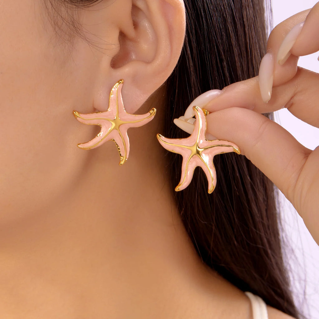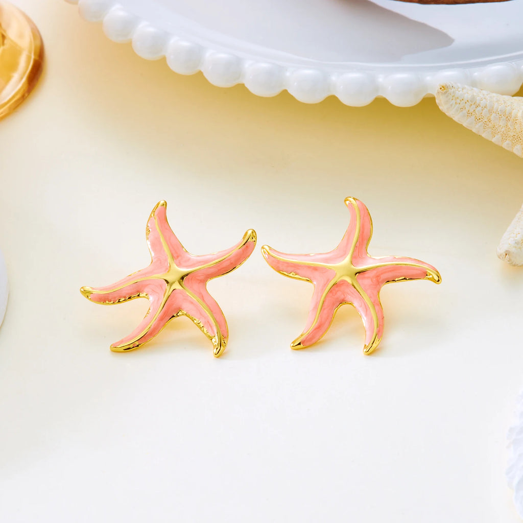 Gold Color Stainless Steel Starfish Earrings For Women Fashion Pink Green Orange Enamel Stud Earring Girls Beach Charm Jewelry