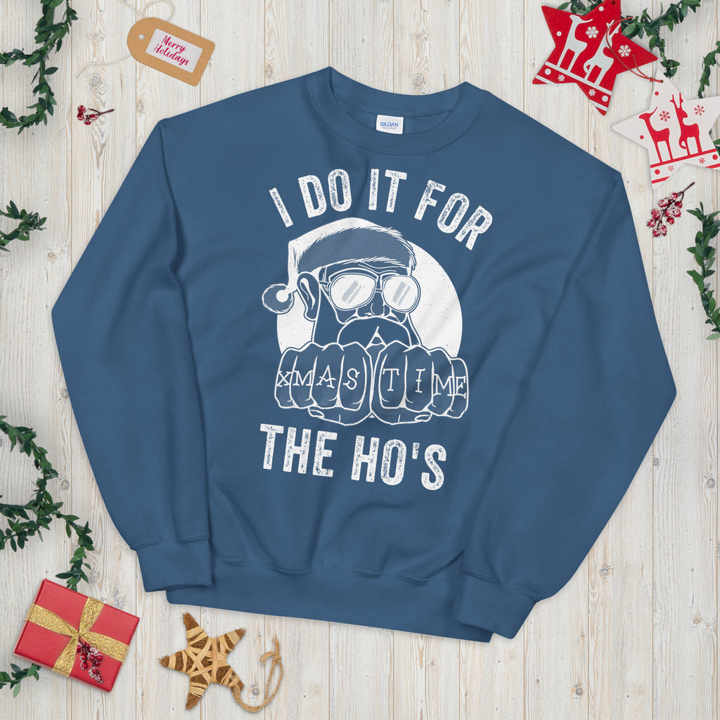 I Do It For The Hos Sweatshirt, Rude Christmas Sweater, Santa Face Shirt, Santa Face Sweatshirt, Rude Xmas Sweatshirt, Offensive Xmas Gifts