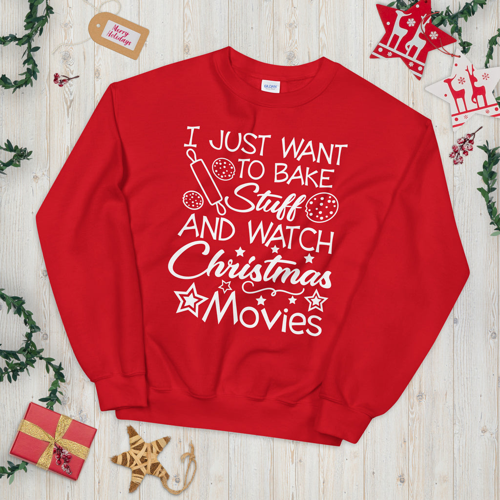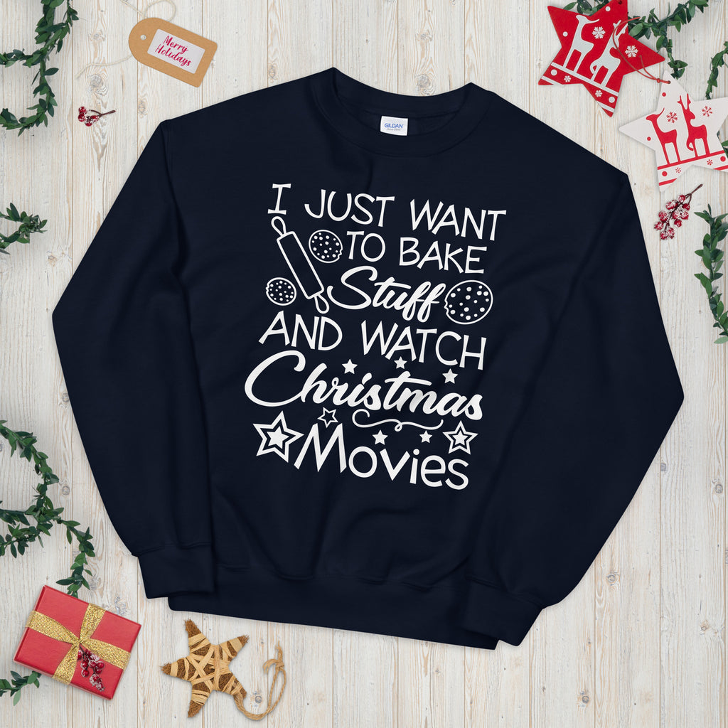 I Just Want to Bake Stuff and Watch Christmas Movies, Christmas Sweater, Baking Sweatshirt, Xmas Cookie Sweater, Christmas Movie Shirt