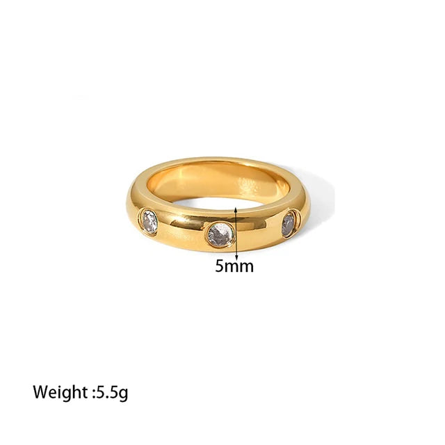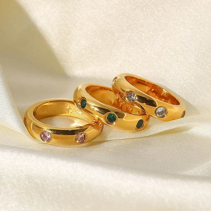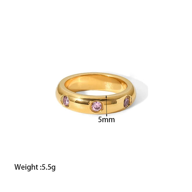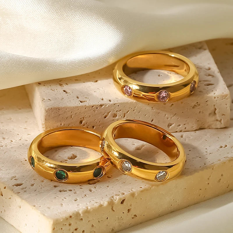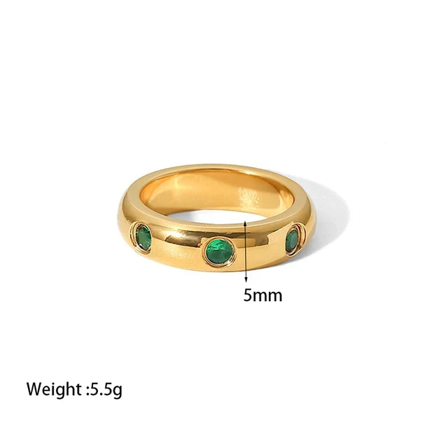 Ins Stainless Steel Green Pink White Cubic Zirconia Bands Rings For Women Girls Waterproof Finger Rings Jewelry Party Gift