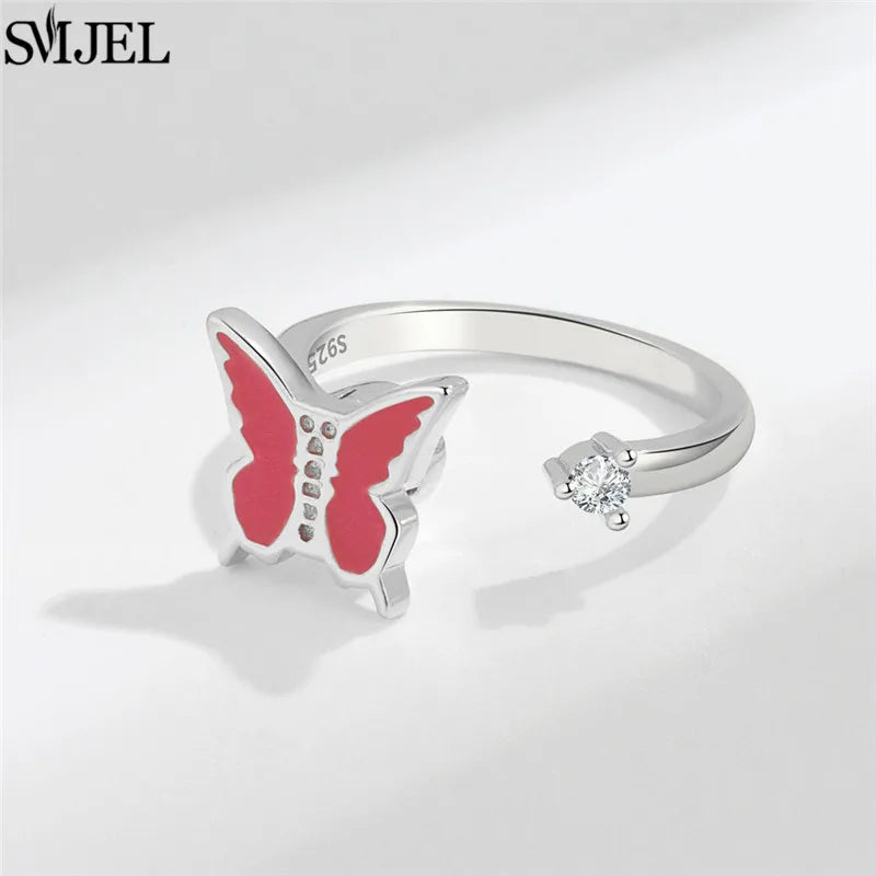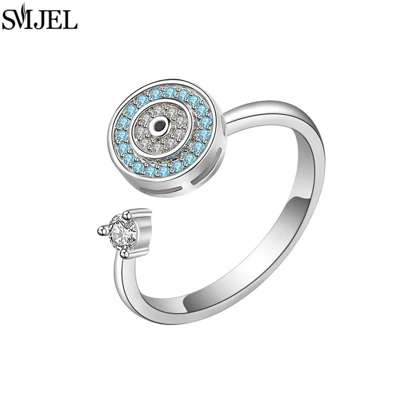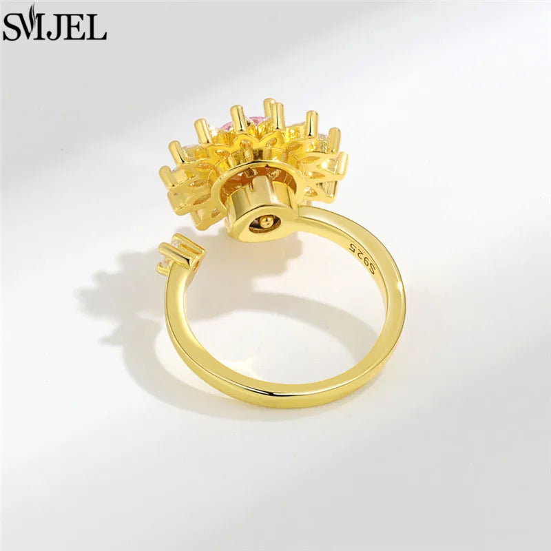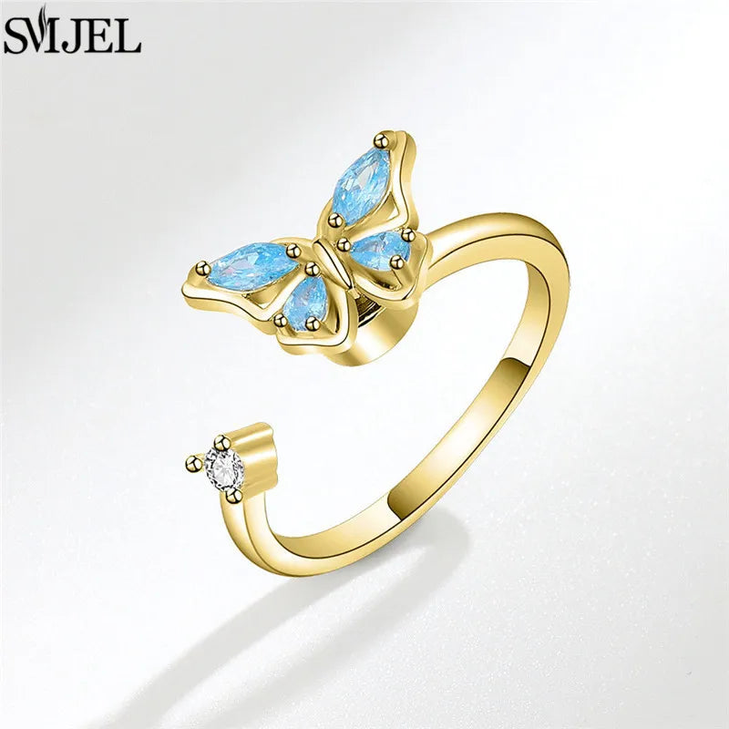 Korean Fashion Anxiety Fidget Spinner Rings for Women Crystal Rose Sunflower Butterfly Rotating Mood Ring Girls Wedding Jewelry
