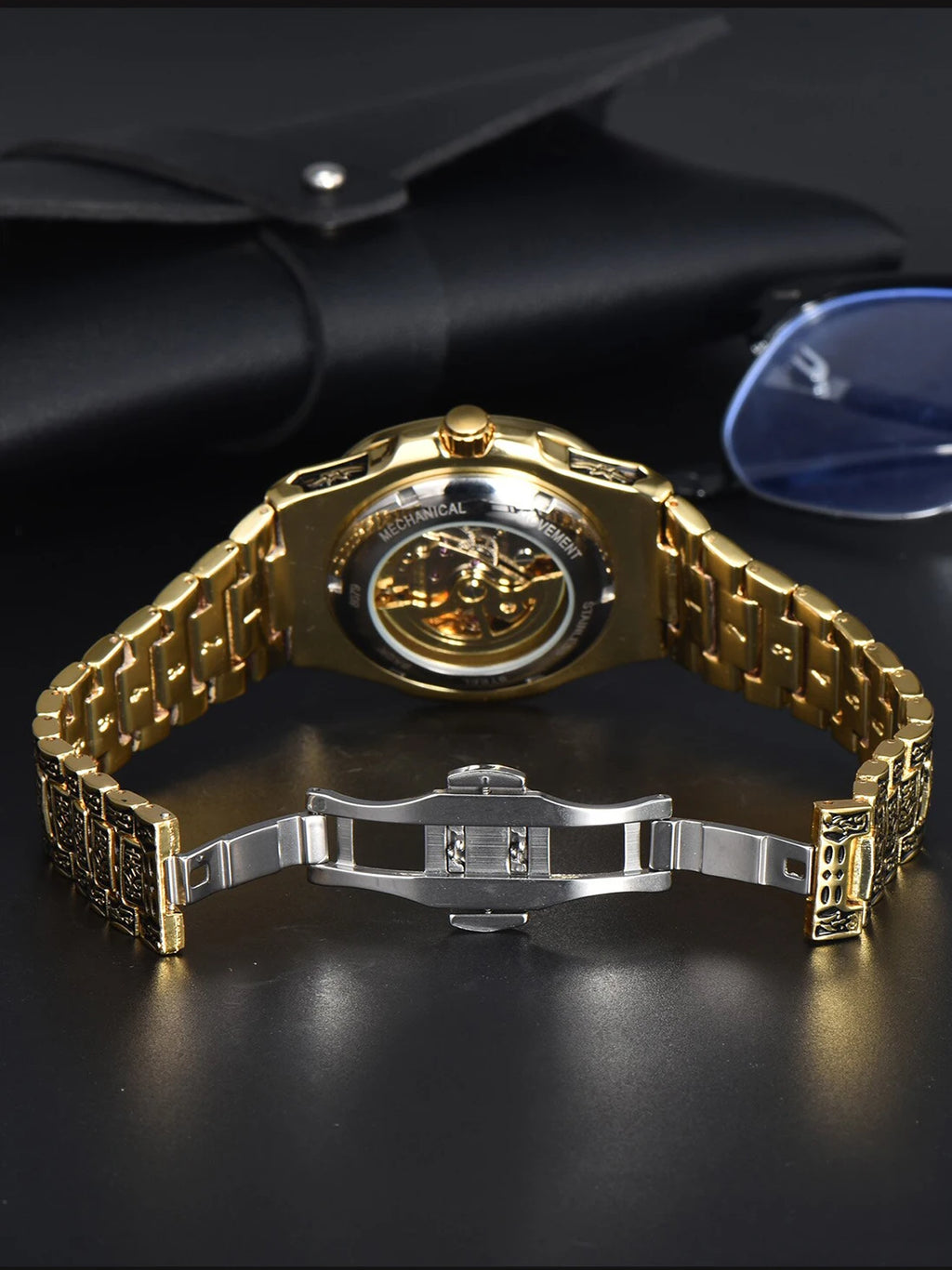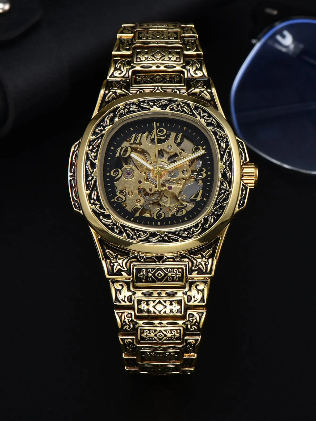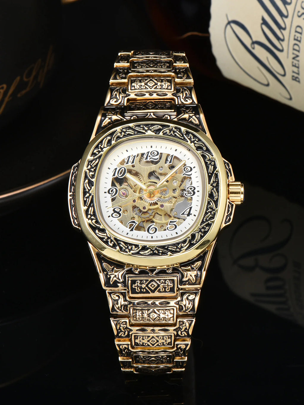 LONGLUX Automatic mechanical watch alloy steel vintage retro luxury waterproof skeleton ffordable 40mm wholesale Watch for Men