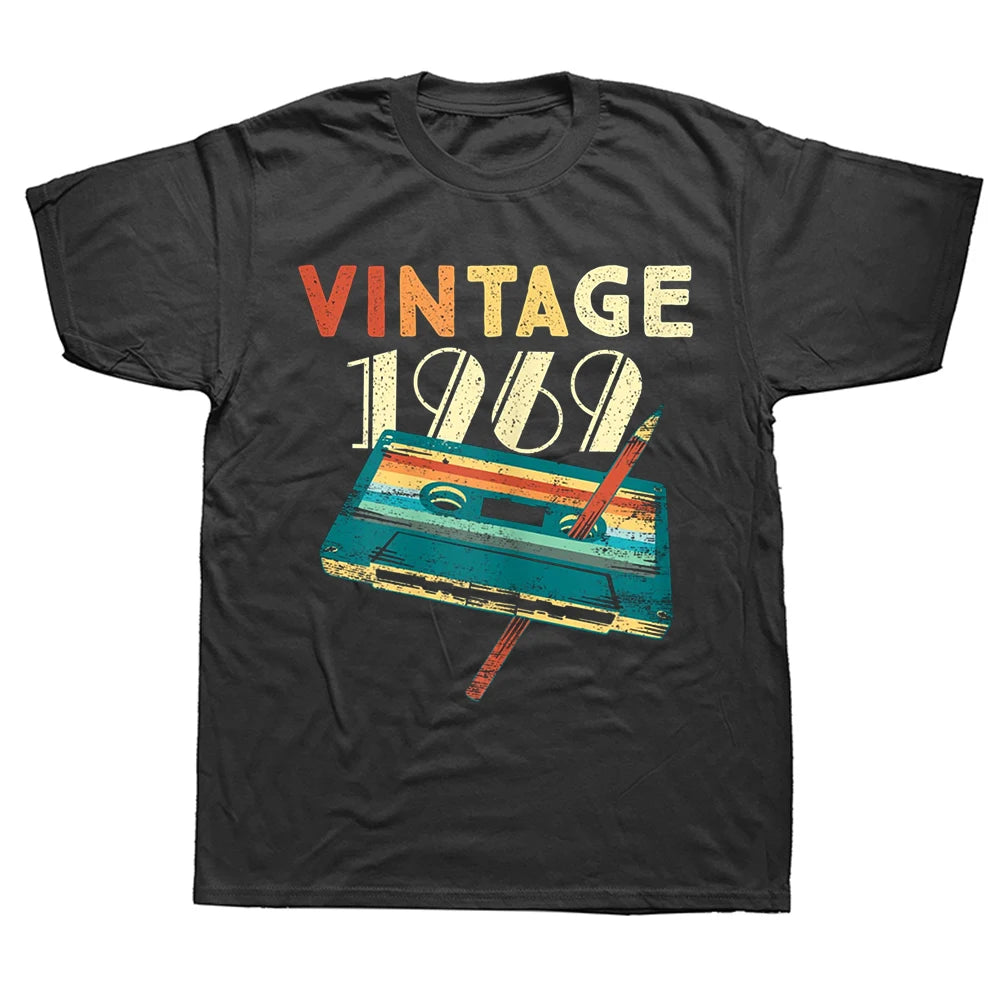 Men O-neck Tshirt Fashion T-shirt Black New Men'S Vintage 1969 Music Cassette 55Th Birthday Gifts 55 Years Old T-Shirt Euro Size