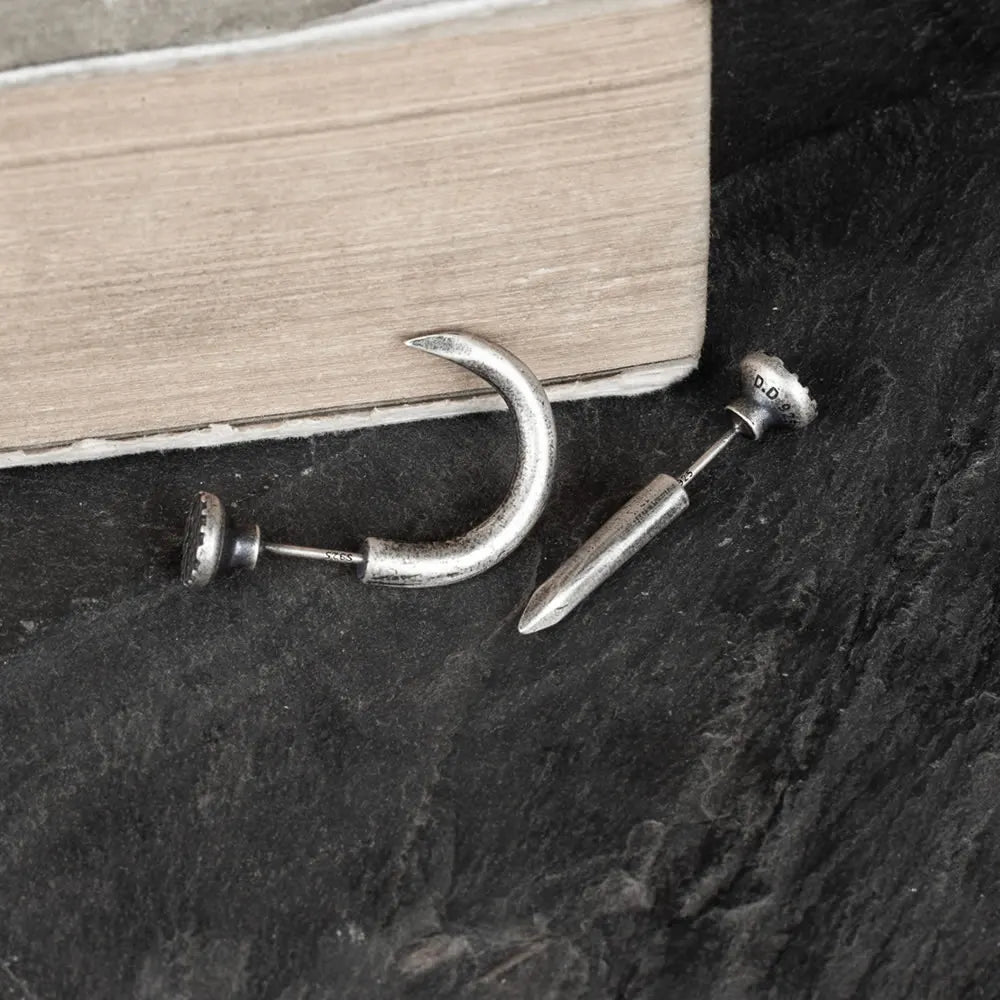MKENDN 100% 925 Sterling Silver Creative Retro Oxidized Black Nail Stud Earring Trendy Street Punk Style Ear Pin For Men Women