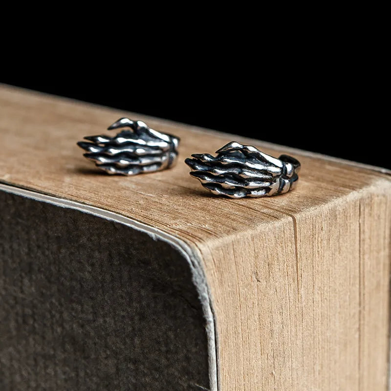 MKENDN 100% 925 Sterling Silver Creative Retro Skull Hand Bone Stud Earring Men Women Hip-hop Street Punk Gothic Ear Jewelry
