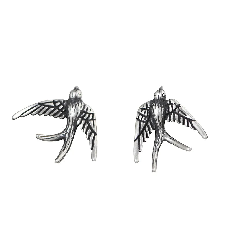 MKENDN 100% 925 Sterling Silver Creative Retro Swallow Stud Earring Punk Street Style Ear Pin for Women Men Animal Jewelry