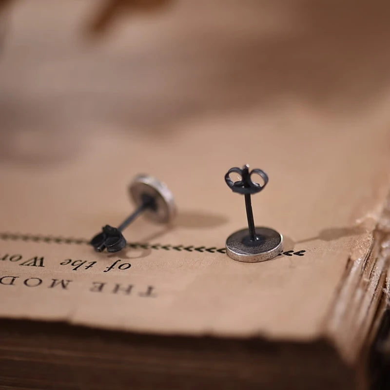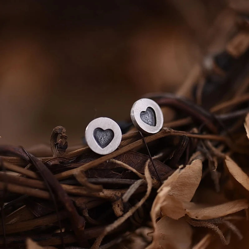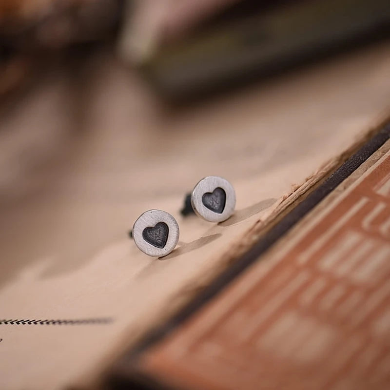 MKENDN 100% 925 Sterling Silver Heart Round Stud Earrings Personality Minimalist Heart Ear Jewelry Accessories Gothic Style