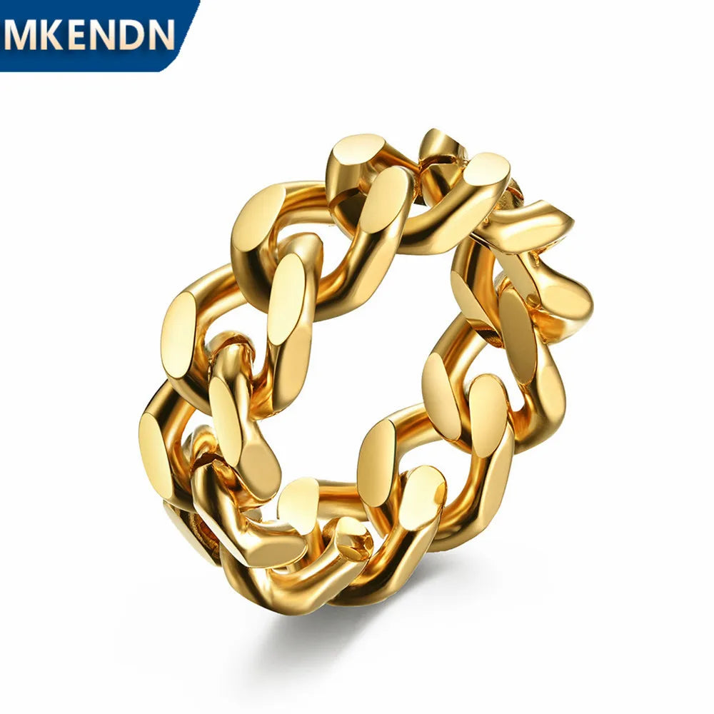 MKENDN Cuban Link Chain Ring for Men Stainless Steel Creative Punk Rock Male Link Rings Trendy Motorcycle Chain Jewlery