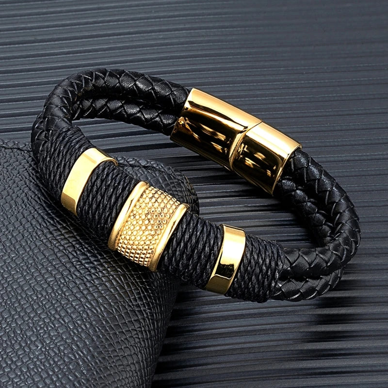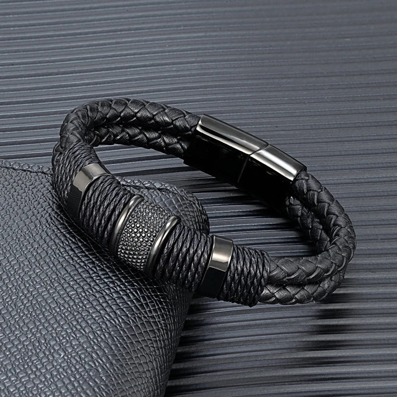 MKENDN Fashion Men Braided Genuine Black Leather Bracelet Stainless Steel Magnetic Buckle Bracelet Gifts Homme Pulseras
