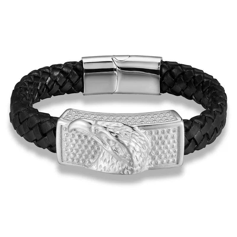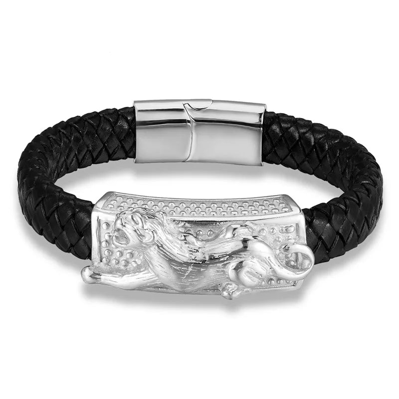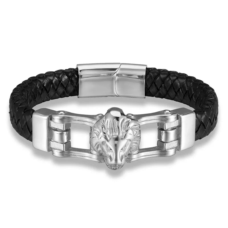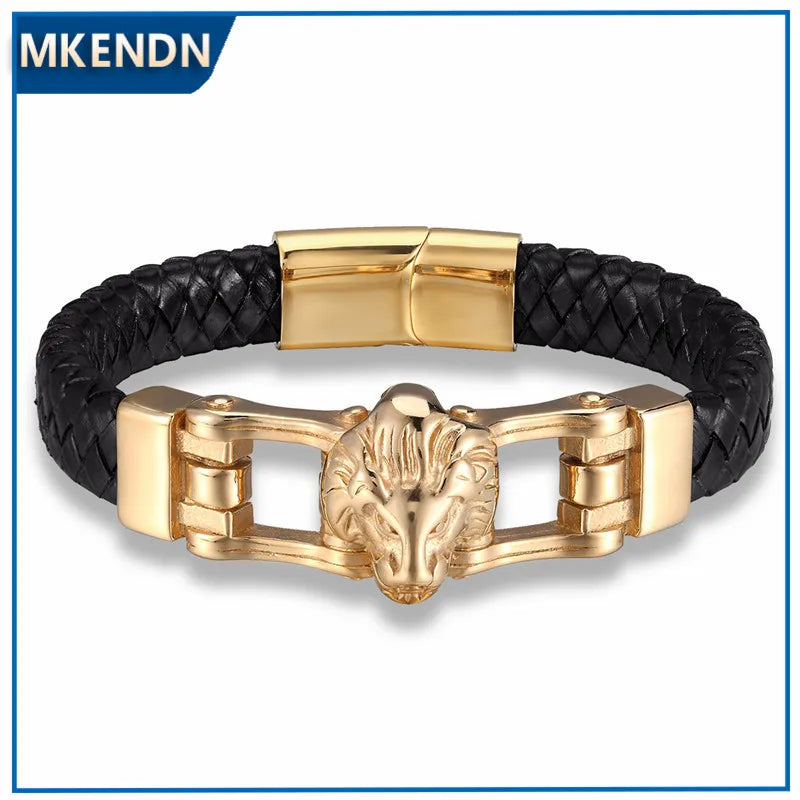 MKENDN High Quality Genuine Leather Bracelet For Men Vikings Wolf Lion Hand Charm Bracelets Magnet Buckle Handmade Punk Jewelry