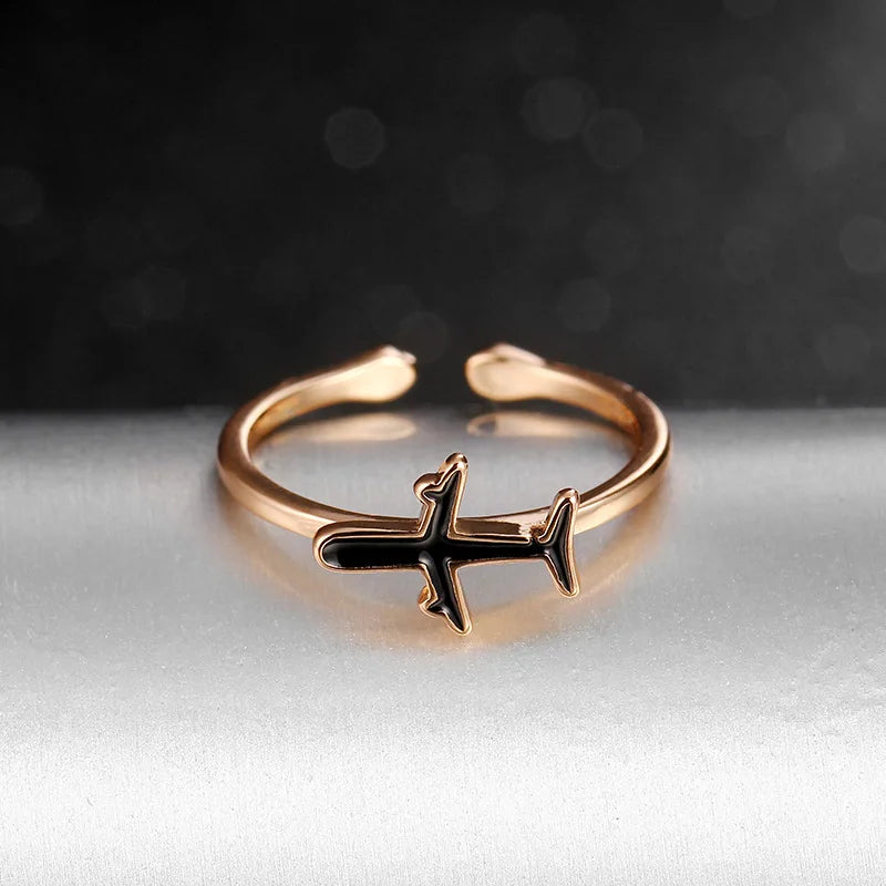 MKENDN High Quality Rose Gold Color Plane Aircraft airplane Adjustable For Women Open Finger Ring Party Unique Jewelry