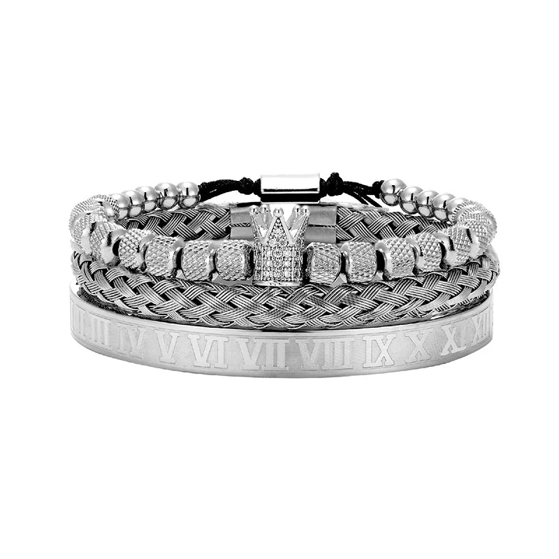 MKENDN Luxury Micro Pave CZ Crown Roman Royal Charm Men Bracelets Stainless Steel Roman Number Bangles Couple Handmade Jewelry