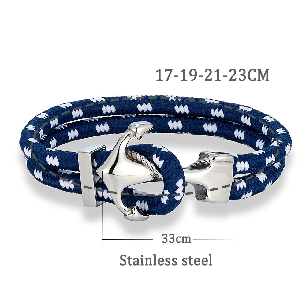 MKENDN Minimalist Nautical Style Anchor Bracelets Men Women Mulitcolor Surfer Rope Bracelet Stainless Steel Boat Hook