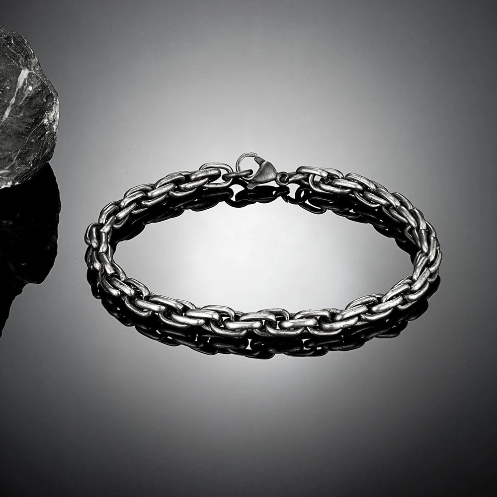 MKENDN Punk Retro Oxidized Black Link Chain Bracelets For Men Motocycle Cuban Chain Stainless Steel Street Rock Biker Jewelry