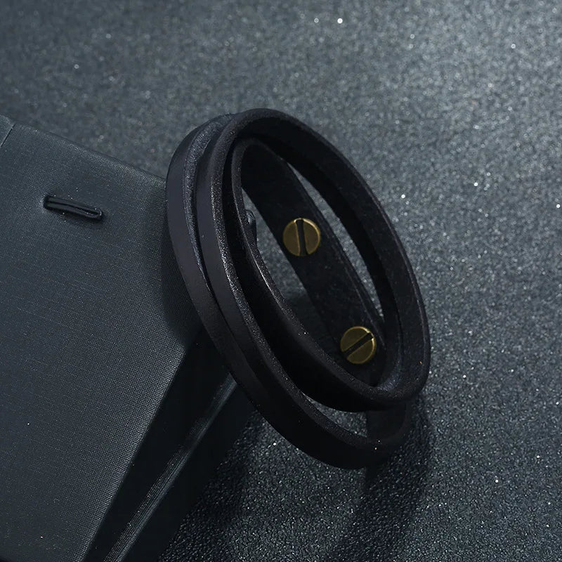 MKENDN Punk Vintage Double Strand Black Brown Real Genuine Cow Leather Charm Unisex Buckle Bracelet For Men Women Jewelry Gifts