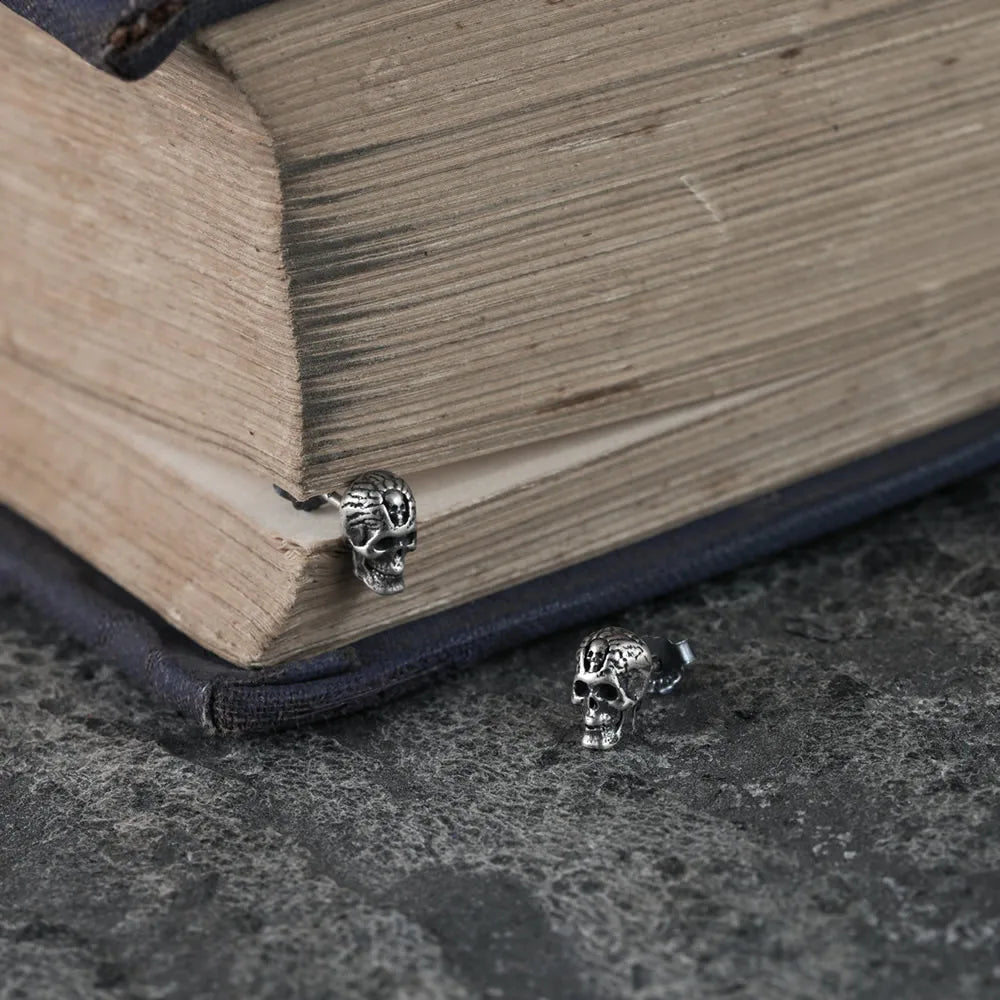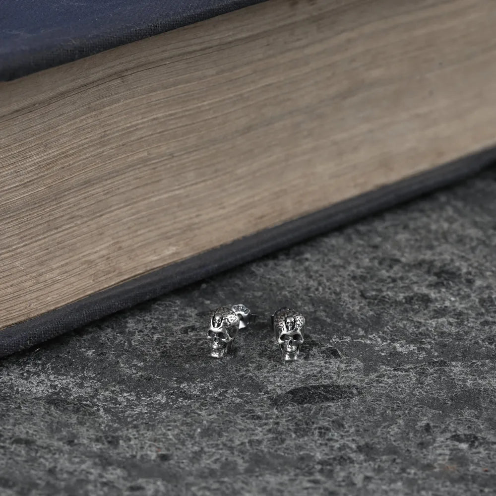 MKENDN Pure 925 Sterling Silver Creative Retro Skull Stud Earring Trendy Street Punk Style for Men Women Europe Fine Jewerly
