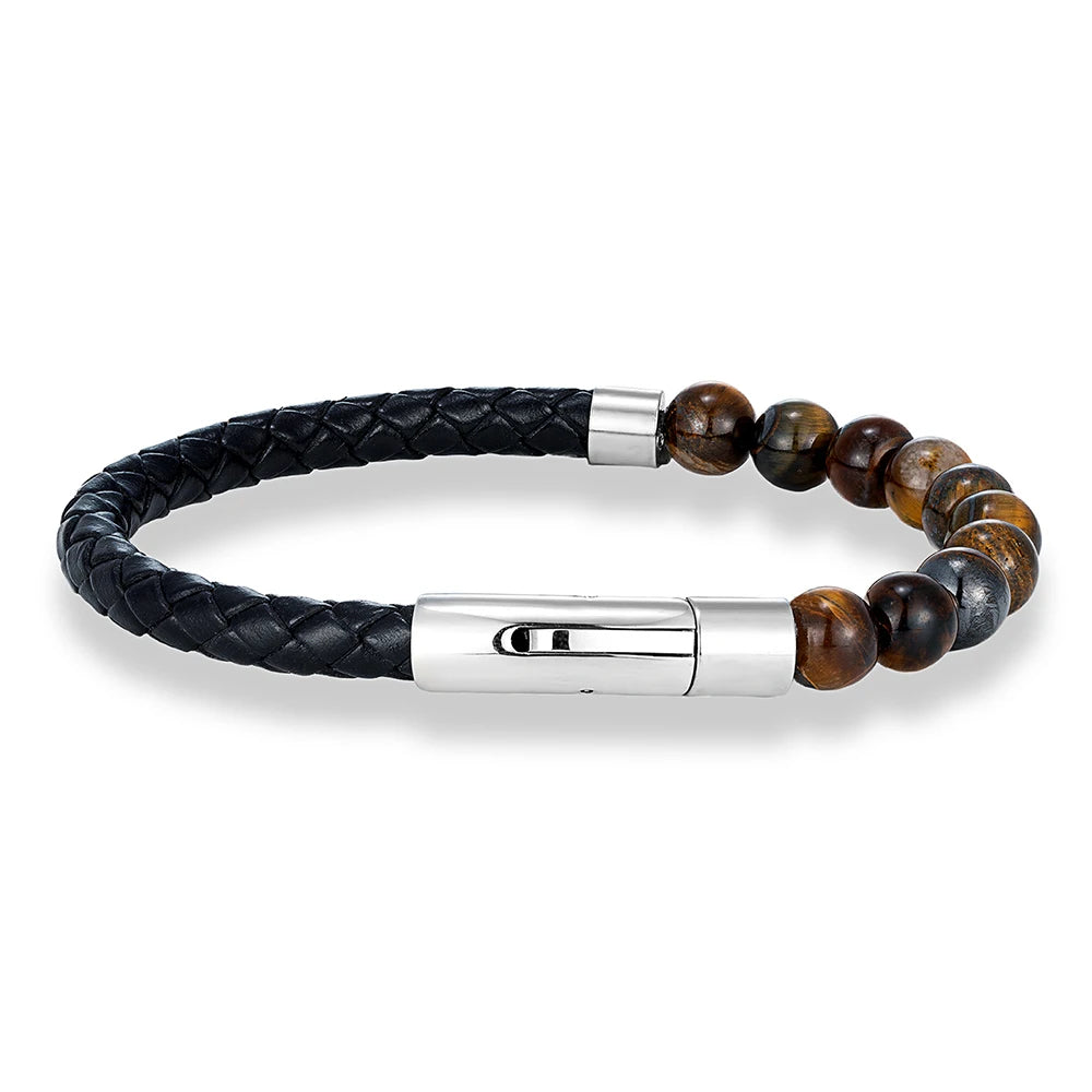 MKENDN Reiki Blue Apatite Bead Bracelet Men Women Braided Leather Natural Stone Blood Circulation Stimulate Enthusiasm Jewelry
