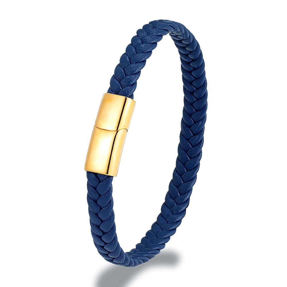 MKENDN Simple Classic Stainless Steel Bracelet for Women Men Genuine Braided Leather Bangles Special Couple Jewelry Gift