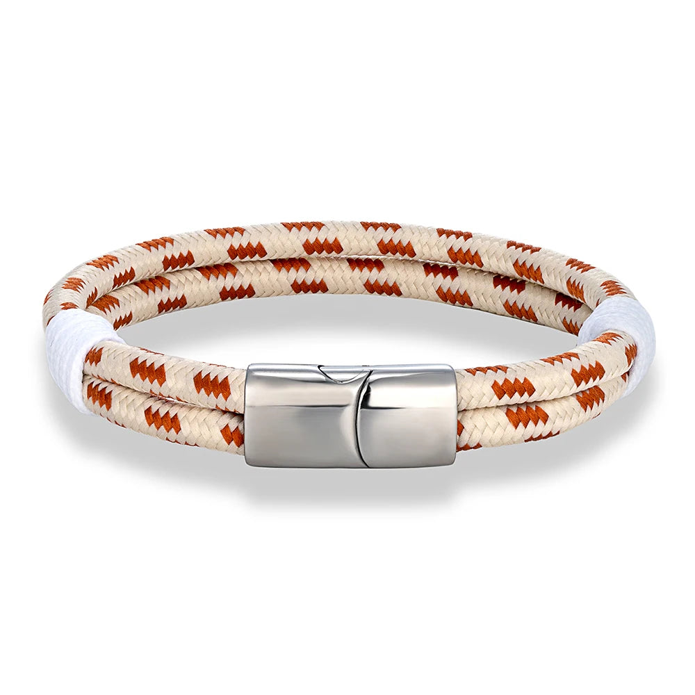 MKENDN Simple Style Men Women Braided Natical Nylon Rope Bracelet Polished Stainless Steel Magnetic Buckle Bracelet Gifts Homme