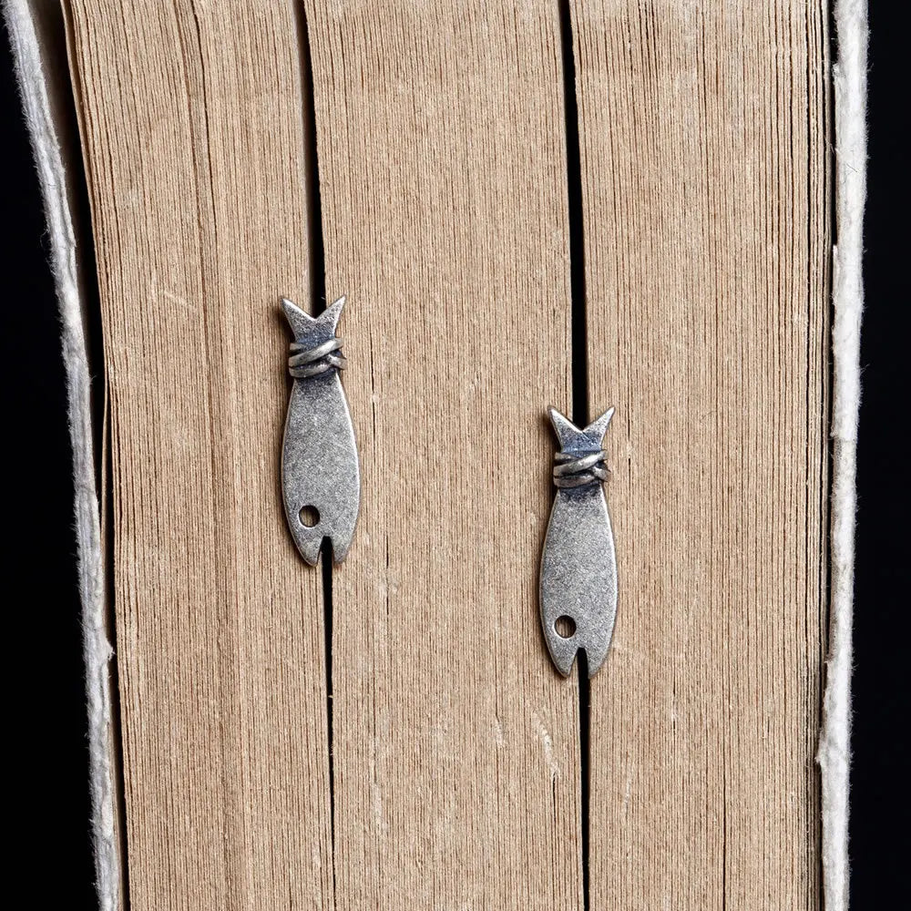 MKENDN Teeny Tiny Fish Earrings Minimalist Stud Earrings Simple Symbol Handcrafted Solid Sterling Silver Studs