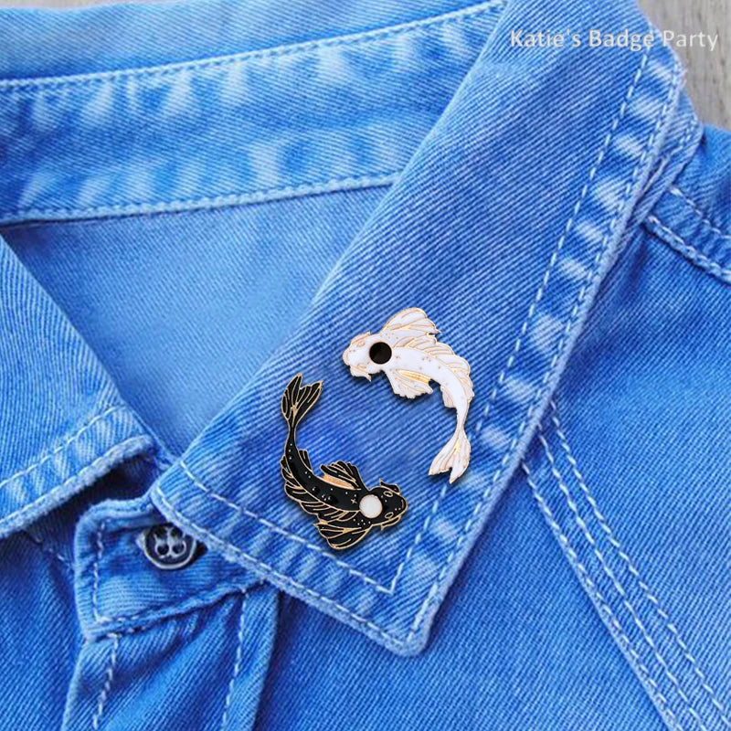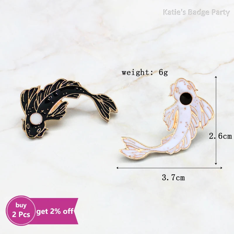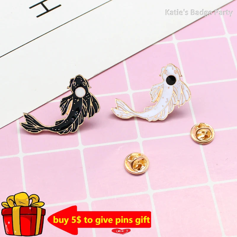 New Animal Pins & Brooches Lovely Goldfish Cod Fish Black and White Good Wish Gifts Lucky Jewelry Diving Clothes Metal Badge