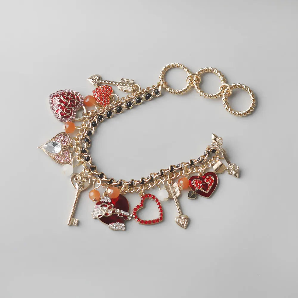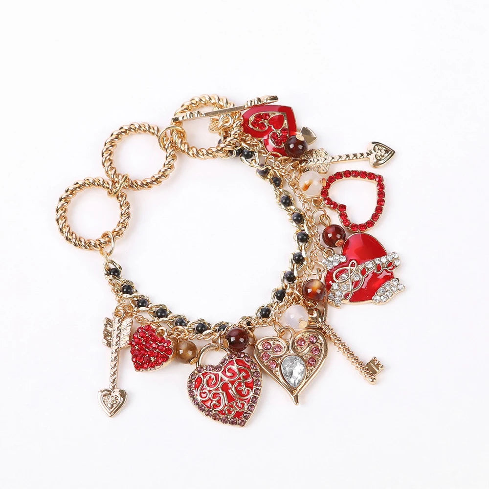 New Chrismas Bracelet Cute Red Love Heart Rhinestone Inlaid Magical Wand Arrow Of Love Beads Charms Bracelets Bangle Jewelry Gif
