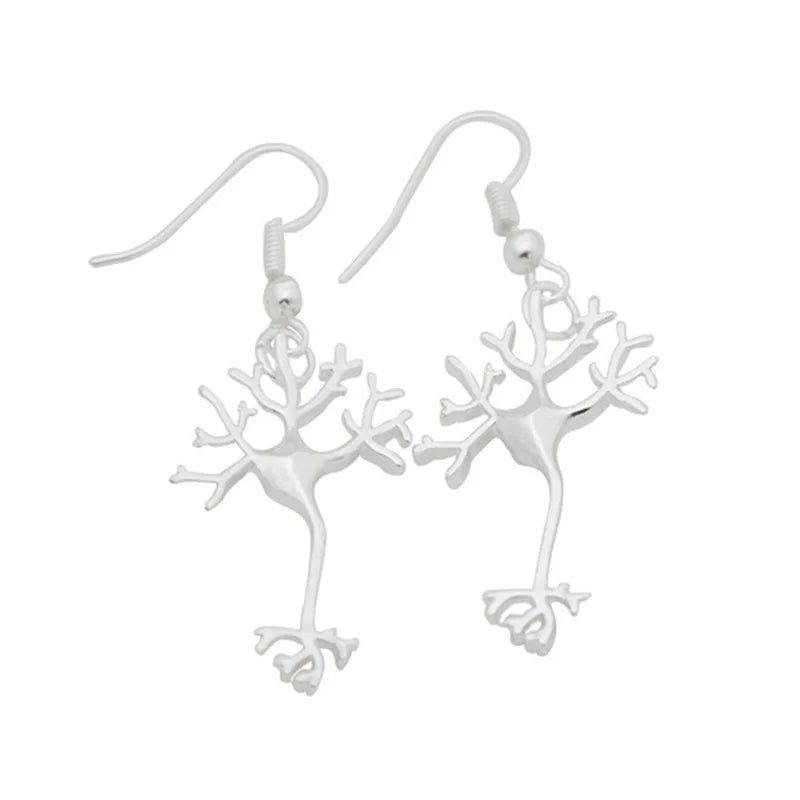 New Silver Color Boho Neuron Brain Nerve Cell Drop Earrings Brinco Aros Long Life Tree Earrings For Women Jewelry Girls Gifts