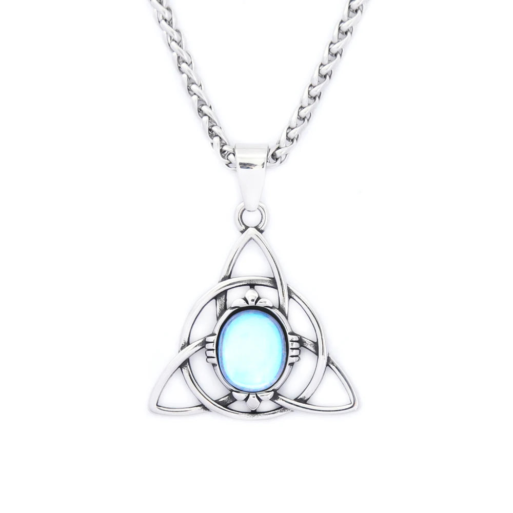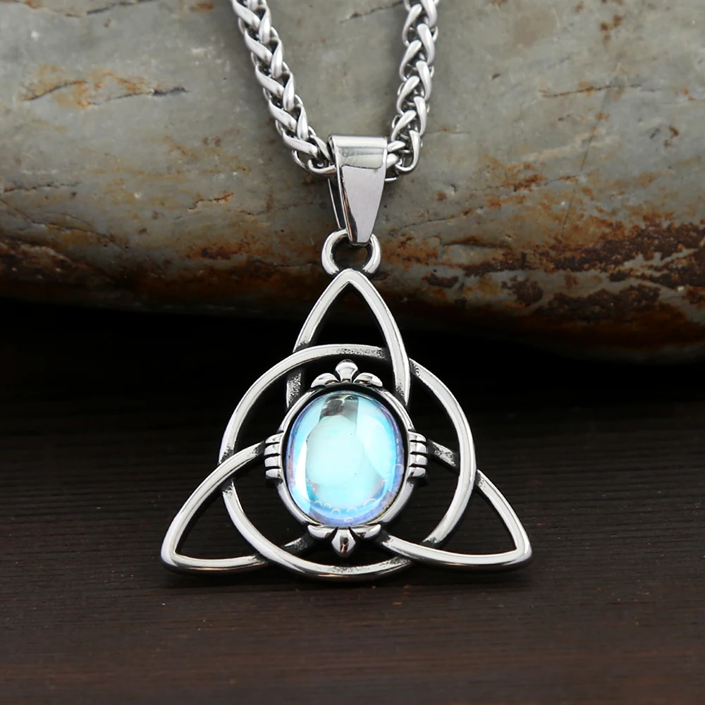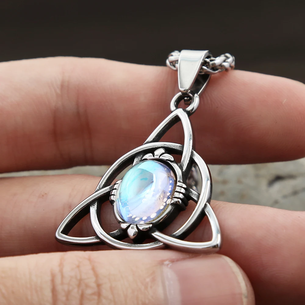 Nordic Vintage Stainless Steel Trinity Knots Pendant Necklaces For Men Women Fashion Opal Necklace Viking Amulet Jewelry Gifts