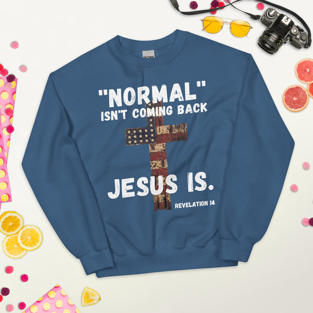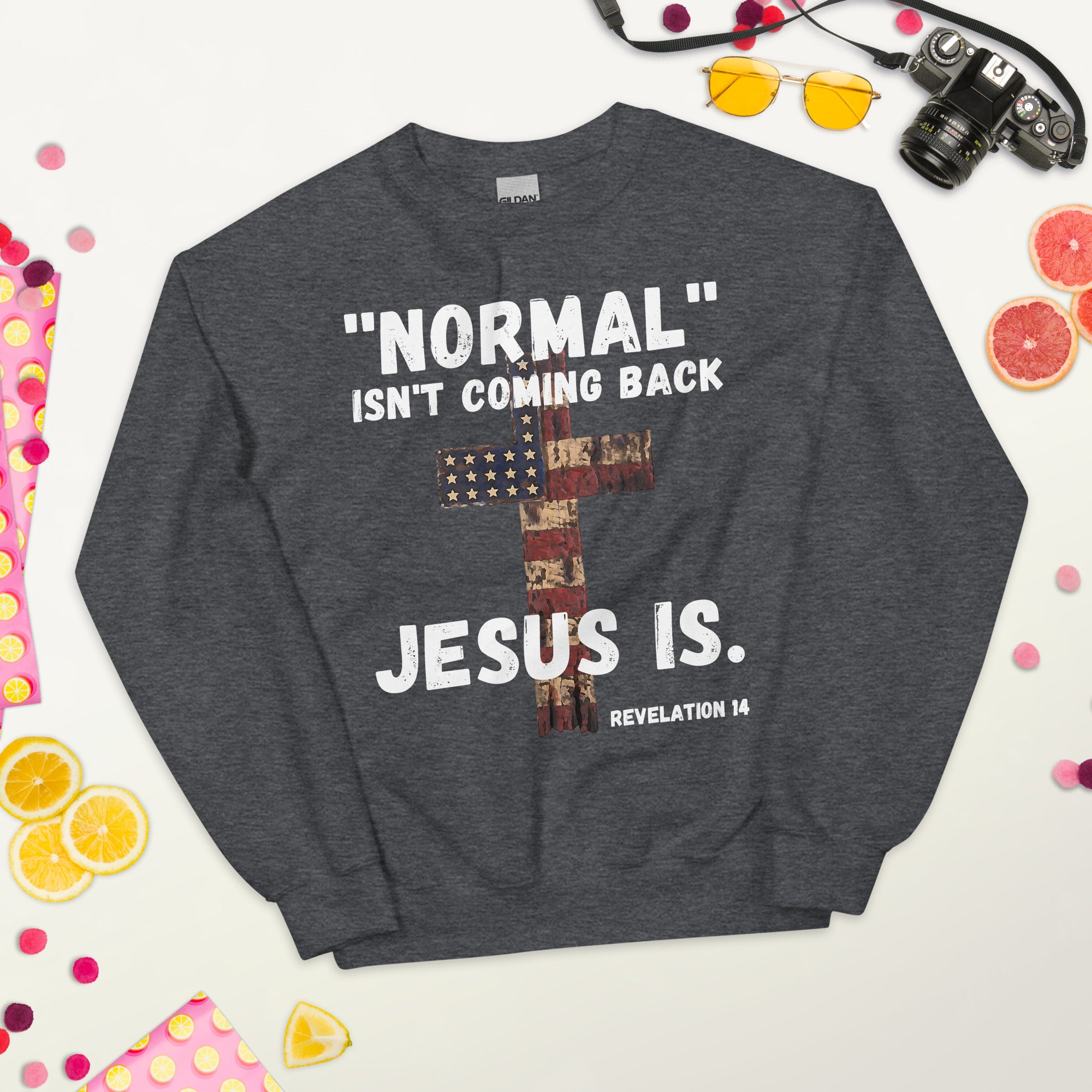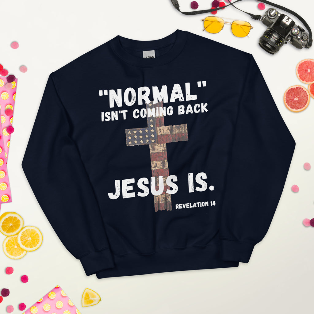 Normal Isnt Coming Back Jesus Is Sweatshirt, Bible Verse Revelation 14 Sweater, Christian Shirt, Religious Gifts, Christian Jesus Sweater
