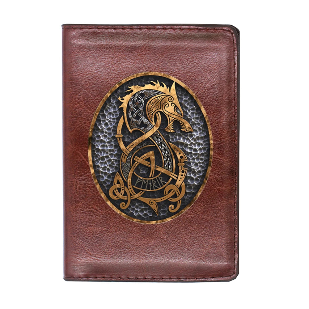 Norse mythology Viking Dragon design Passport Cover Men Women Leather Slim ID Card Travel Holder Pocket Wallet Purse Money Case