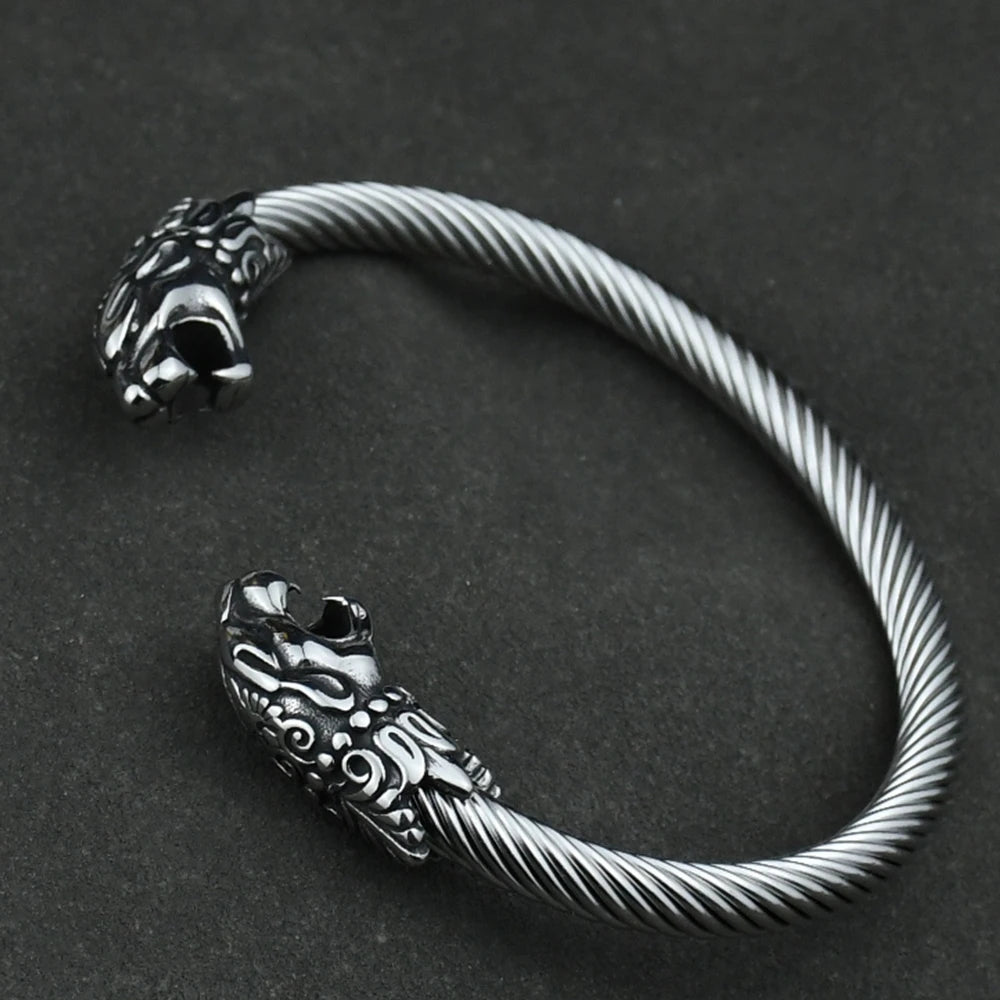 Norse viking odin wolf Scandinavian stainlesss steel viking wolf bangle viking cuff bracelet amulet bracelet for men