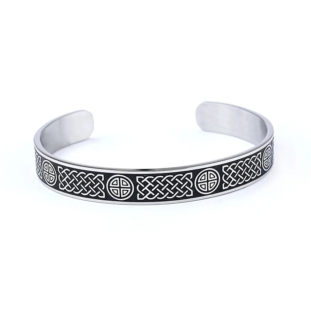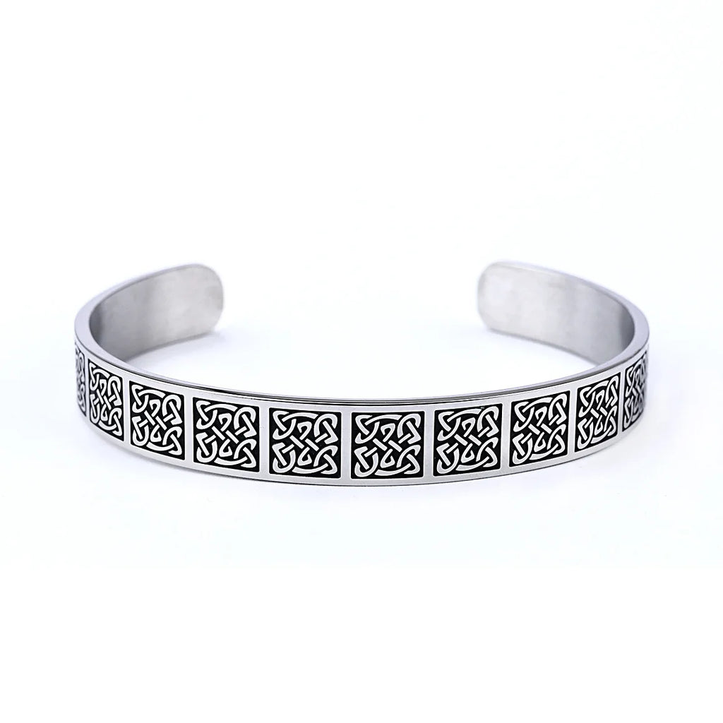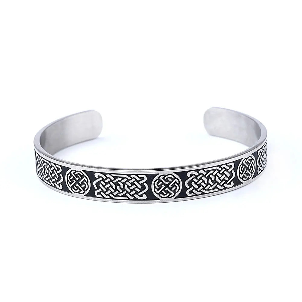 Norse Viking Rune Cuff Bracelet Stainless Steel Jewelry Fashion Claddagh Style Celtic Knot Wedding Bangle Women Men SJB0397A