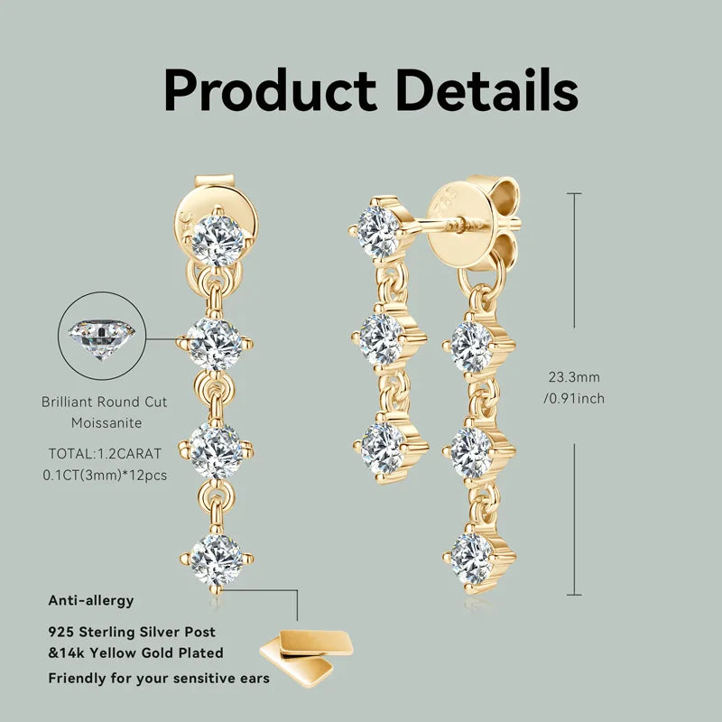 OXTAO 925 Sterling Silver Tassel Chain Earrings 3mm Real Moissanite Drop Earrings Classic Engagement Wedding Jewelry Gift