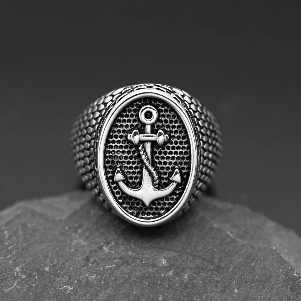 Retro Anchor Navy Marine Large Ring For Men Silver Color Punk Gothic Rock Hiphop Ring Pirate Biker Accessories Designer Jewelry