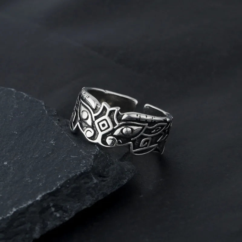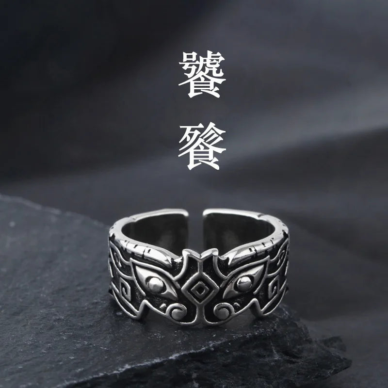 Retro Taotie Chinese Mythology Ring For Men Punk Gothic Rock Hiphop Open Ring Handmade Designer Jewelry Accessories Unisex Gift