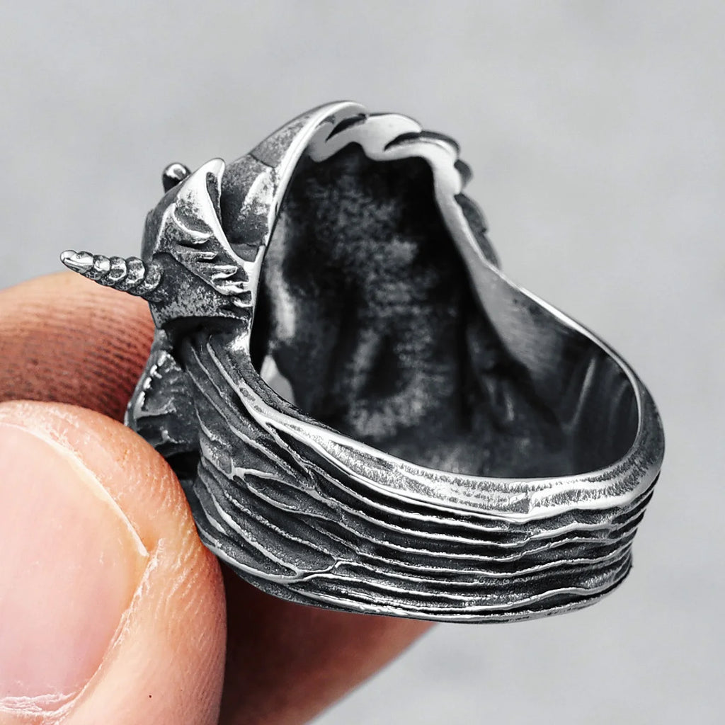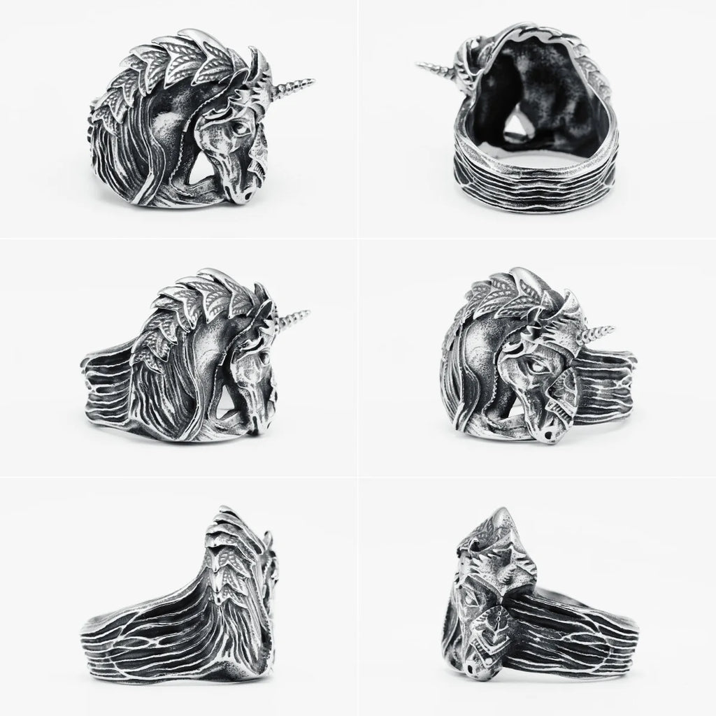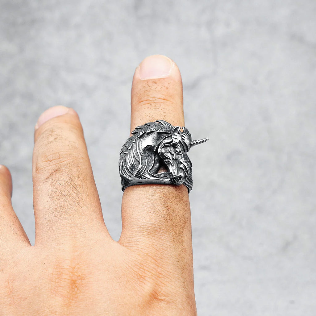 Retro Unicorn Men Rings 316L Stainless Steel Lucky Amulet Ring Rock Rap Party for Biker Male Friend Jewelry Creative Best Gift