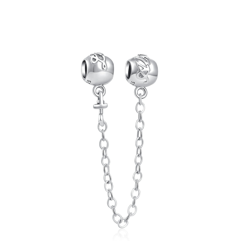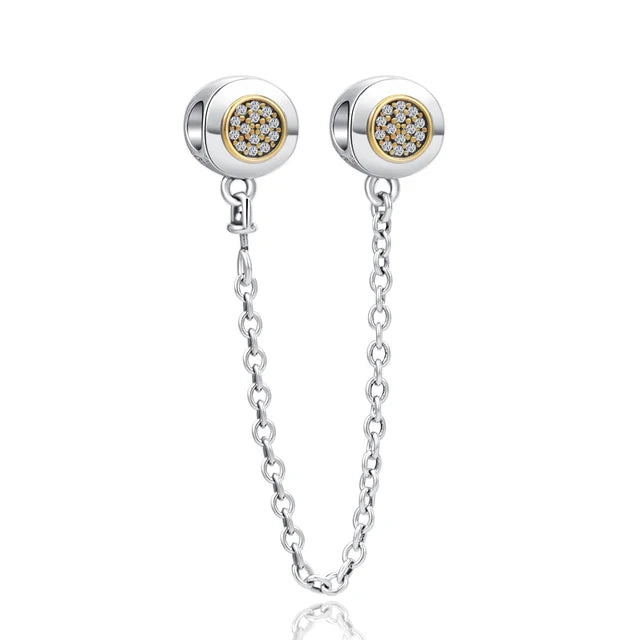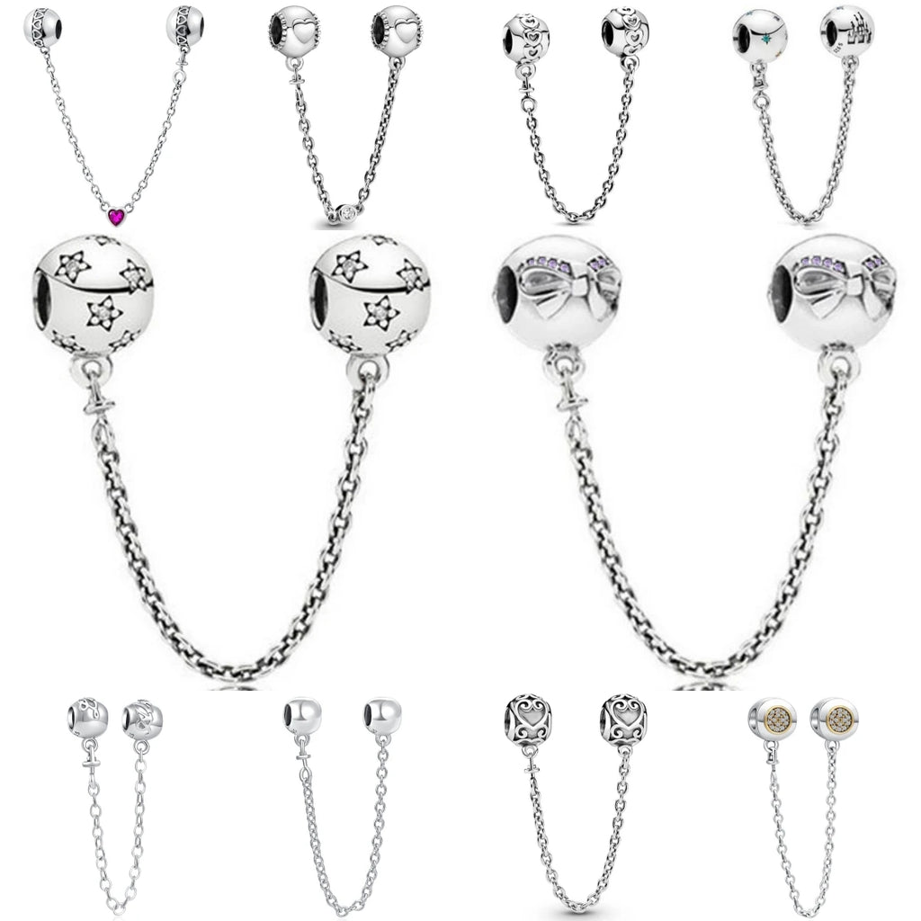 Silver 925 Sparkling Clear Sparkle Bow Stars Safety Chain Charm Bead Fit Original Pendant DIY Jewelry For Women