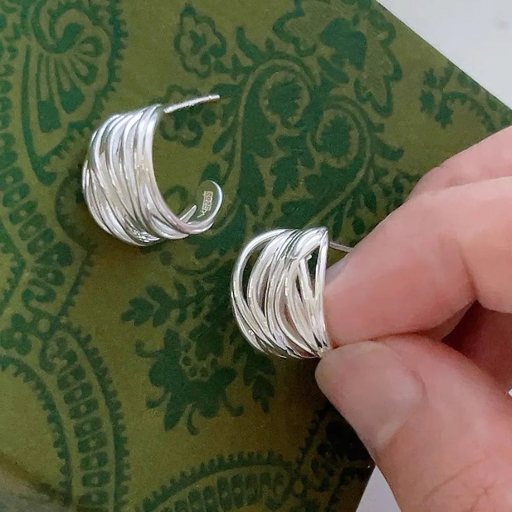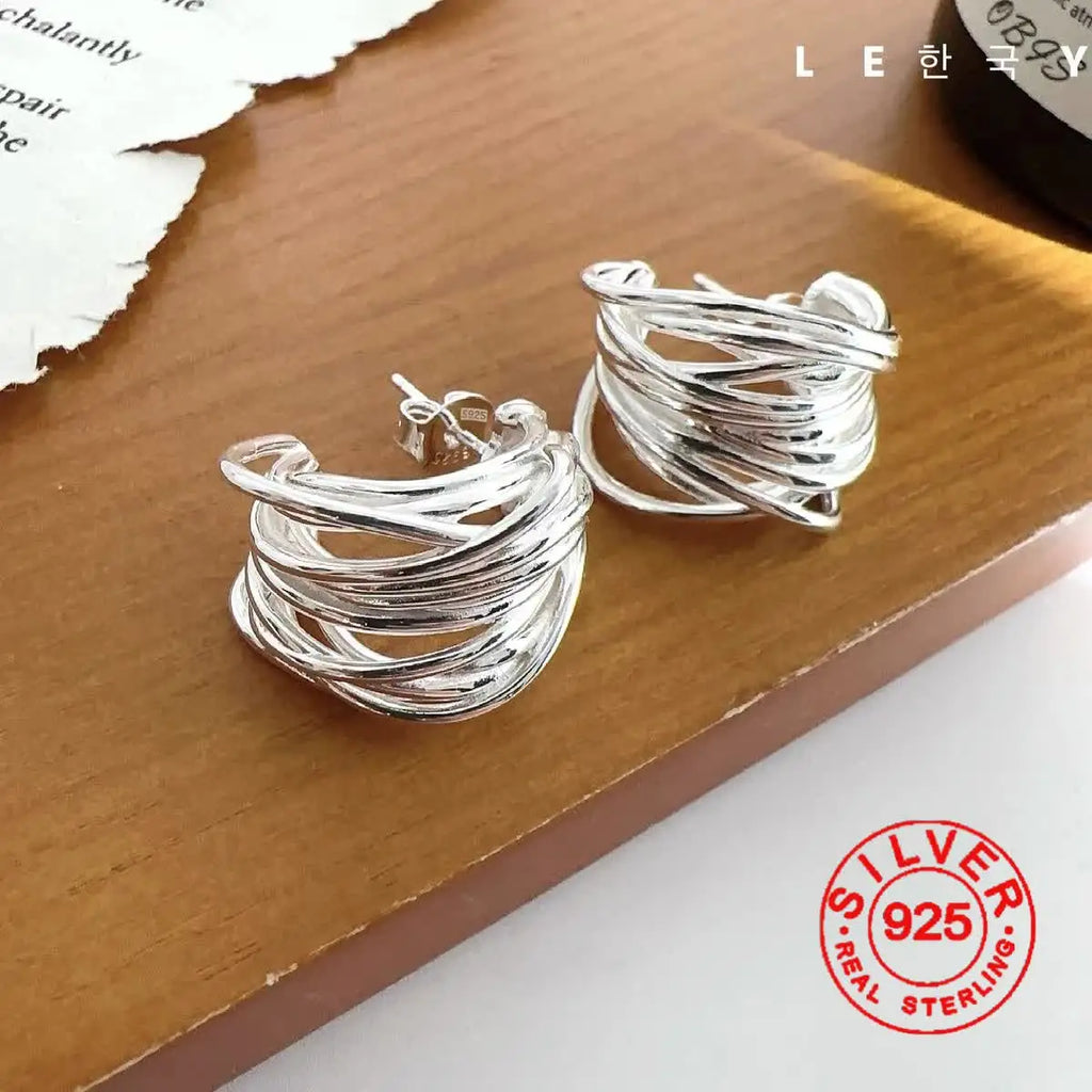 Silver Color Interware Lines Earrings For Women Sexy Girl Fashion Trendy Jewelry Cilp Earring Gift Party Wedding Pendientes