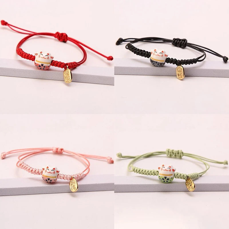 Simple Ceramic Lucky Cat Braided Bracelet for Women Men Multicolor Cute Animal Hand-Knitted Adjustable Bracelet Harajuku Jewelry