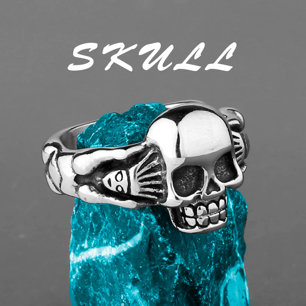 Skeleton Punk Men's Ring Rock Motorcycle Stainless Steel Ring Titanium Steel Casting Creative Gift Wholesale